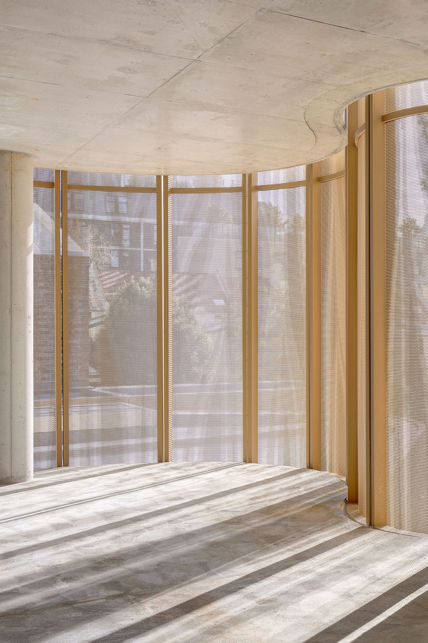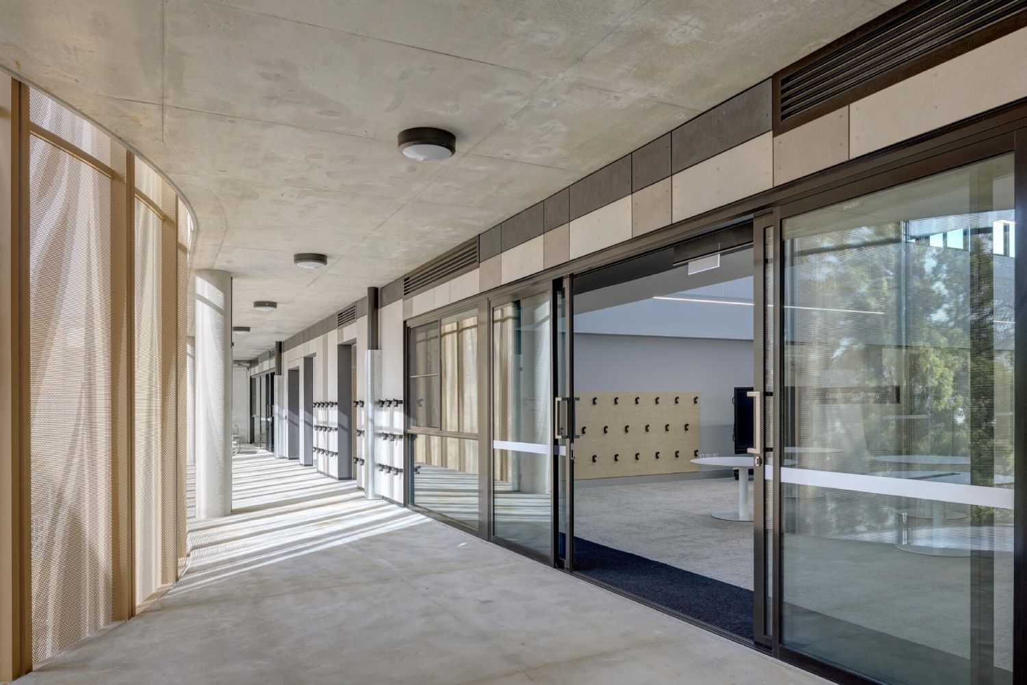 Zgrada škole, koja je otvorena prošle jeseni, sadrži i seriju terasa na otvorenom koje omogućavaju prodor prirodnog svetla u unutrašnjost, a u isto vreme štite i privatnost učenika.