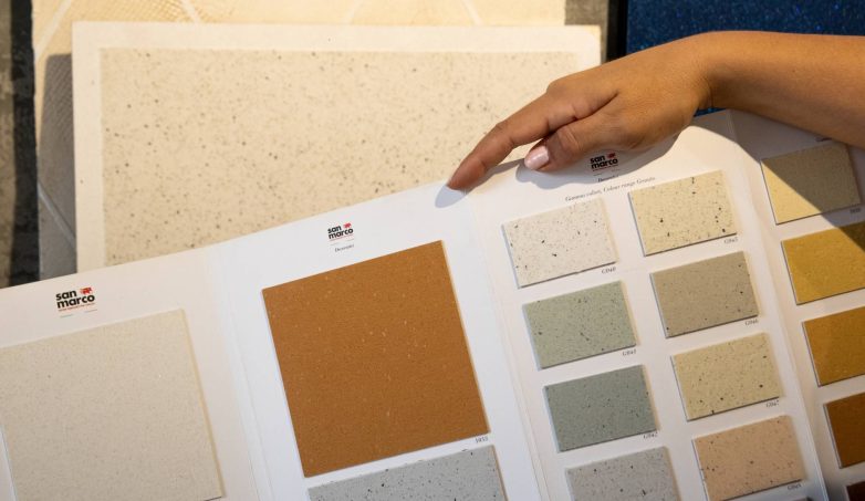 U pitanju je tehnika Acrisyl Decor čuvenog proizvođača San Marco, a ono što ovaj zidni premaz čini posebnim jeste što se dobija izgled prirodnog kamena ili granita sa sitnim reflektujućim tačkicama zahvaljujući sjajnim kristalima.