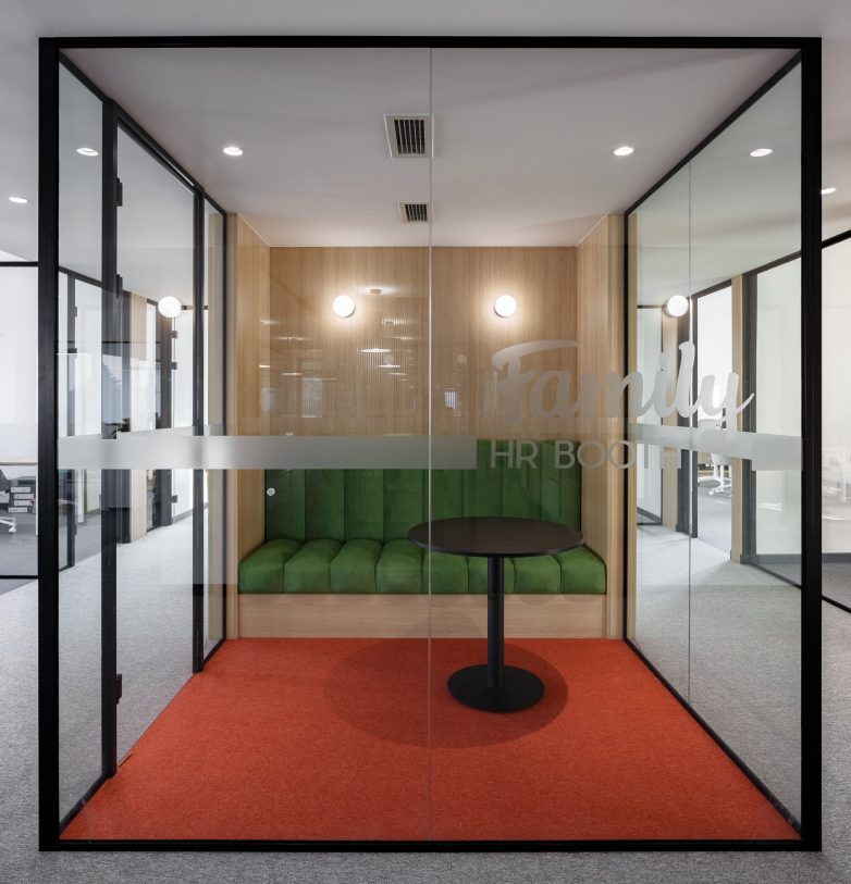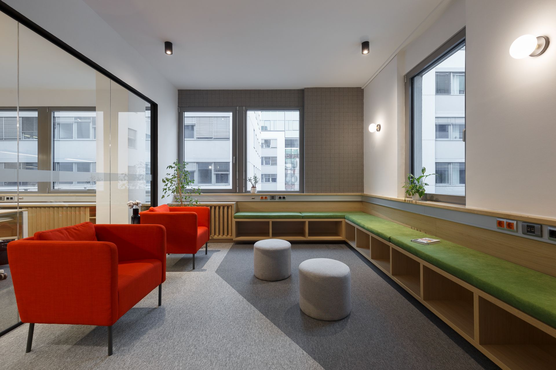 Pored kancelarija, prostor je funkcionalno obogaćen kabinama za telefoniranje, salama za sastanke različitih veličina kao i prostorom za interakciju zaposlenih.
