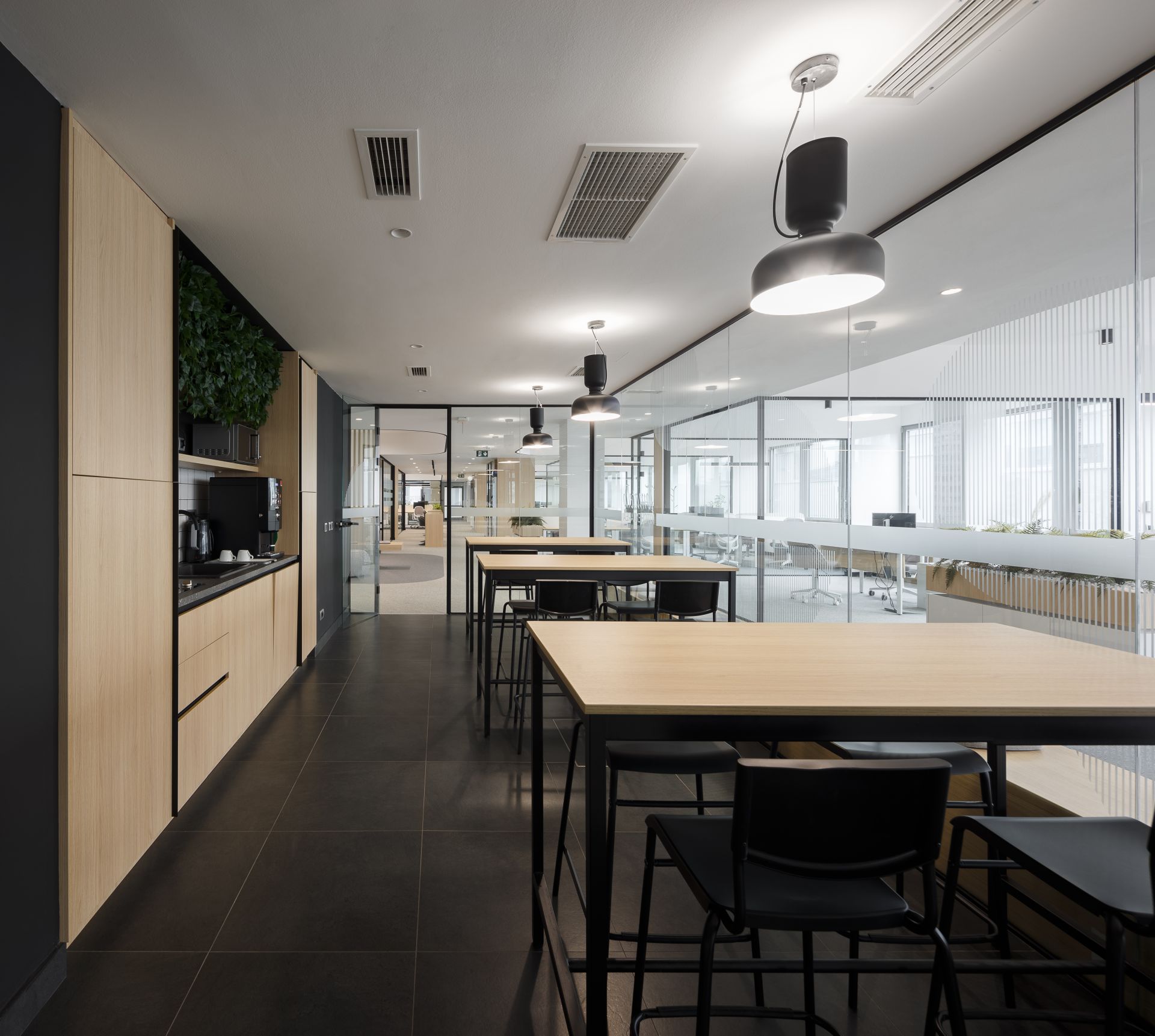 Prirodni materijali prave balans između uređenog kancelarijskog prostora i toplog okruženja za boravak zaposlenih.