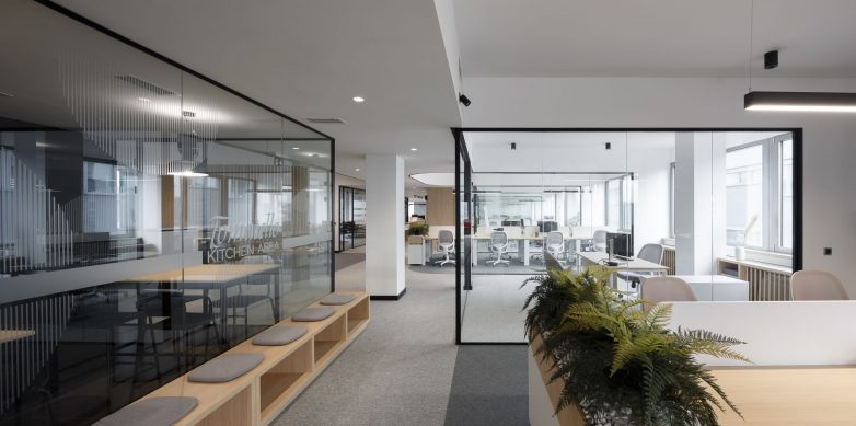 „Ovo je postignuto racionalnom organizacijom departmana i staklenim pregradama koje kreiraju zatvorene kancelarije, a ujedno i segregaciju samih departmana, dok sa druge strane ne stvaraju vizuelnu barijeru u prostoru i omogućavaju da se ostvari utisak jedinstvenog prostora“ – kažu iz B11.