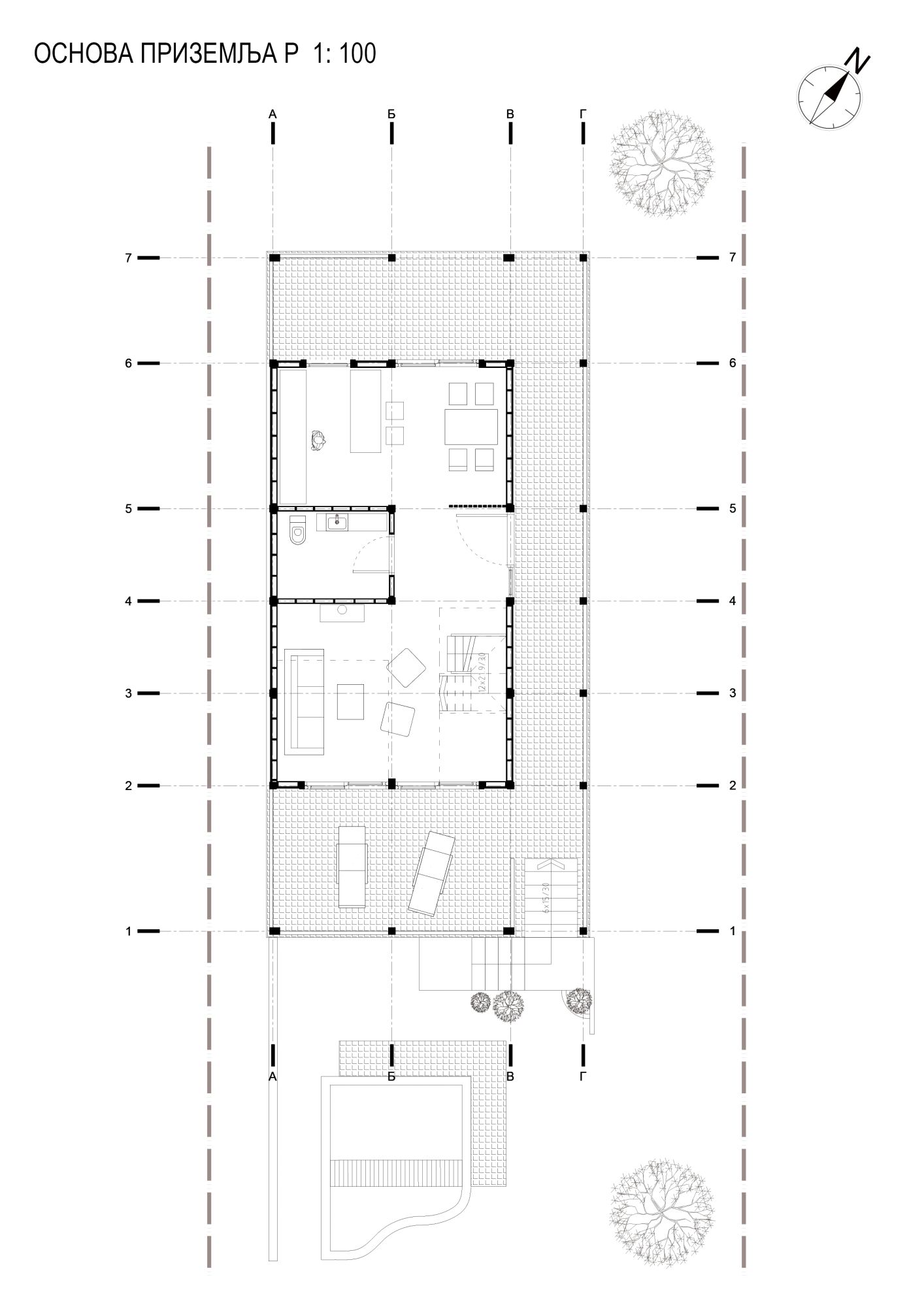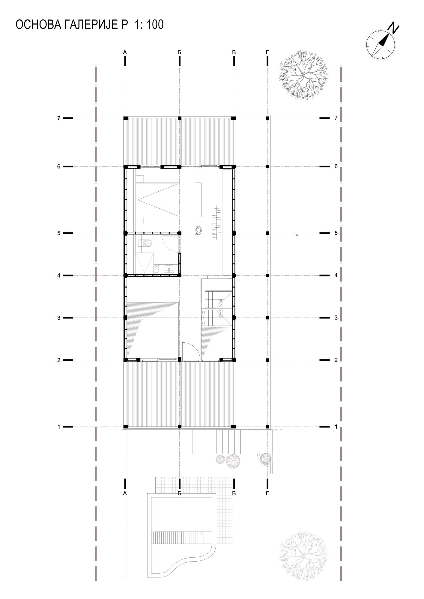 Drugi, tipološki, izvor ideje predstavlja tradicionalna vojvođanska kuća, podužna lamela sa dvovodnim krovom i tremom, tzv. „gonkom“, duž bočne strane. Taj koncept ovde je preuzet i interpretiran u skladu sa savremenim životnim navikama i potrebama.