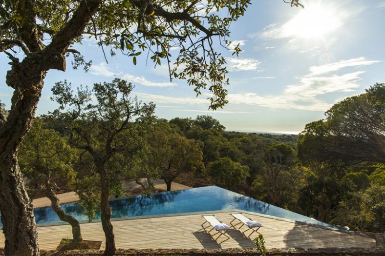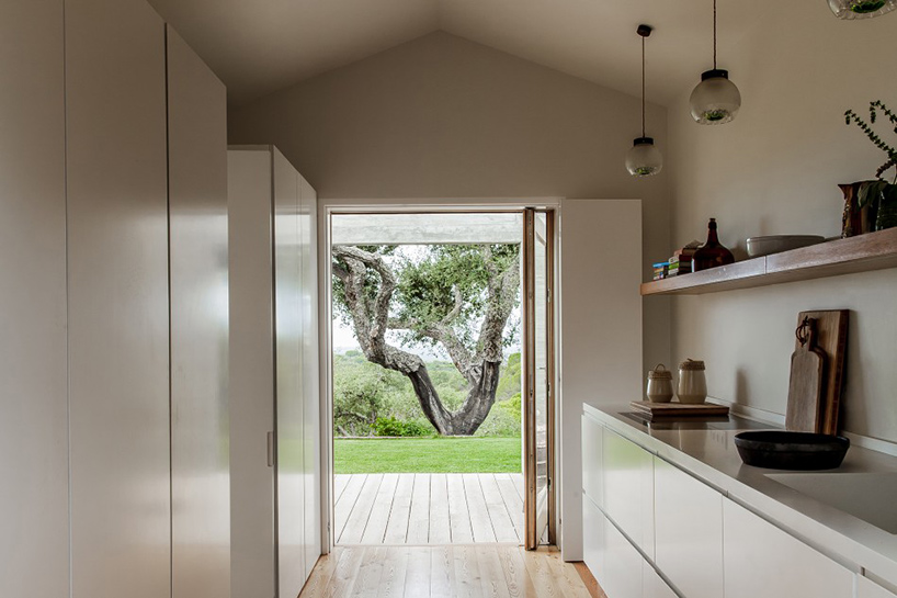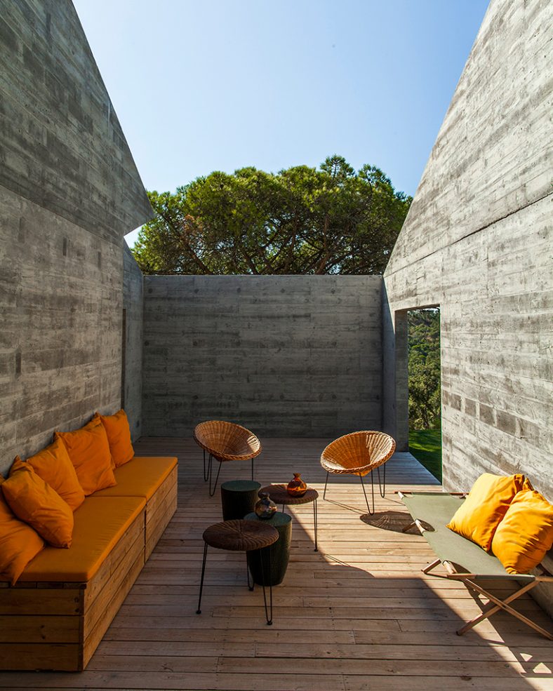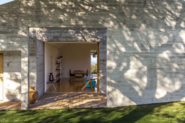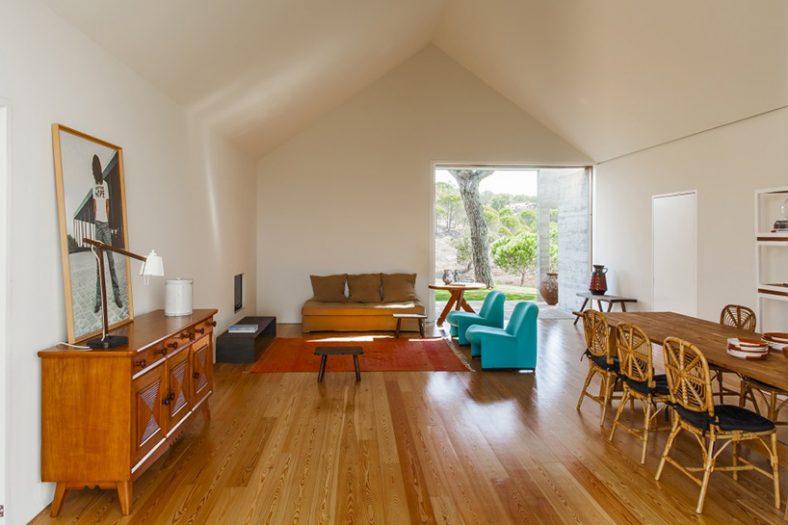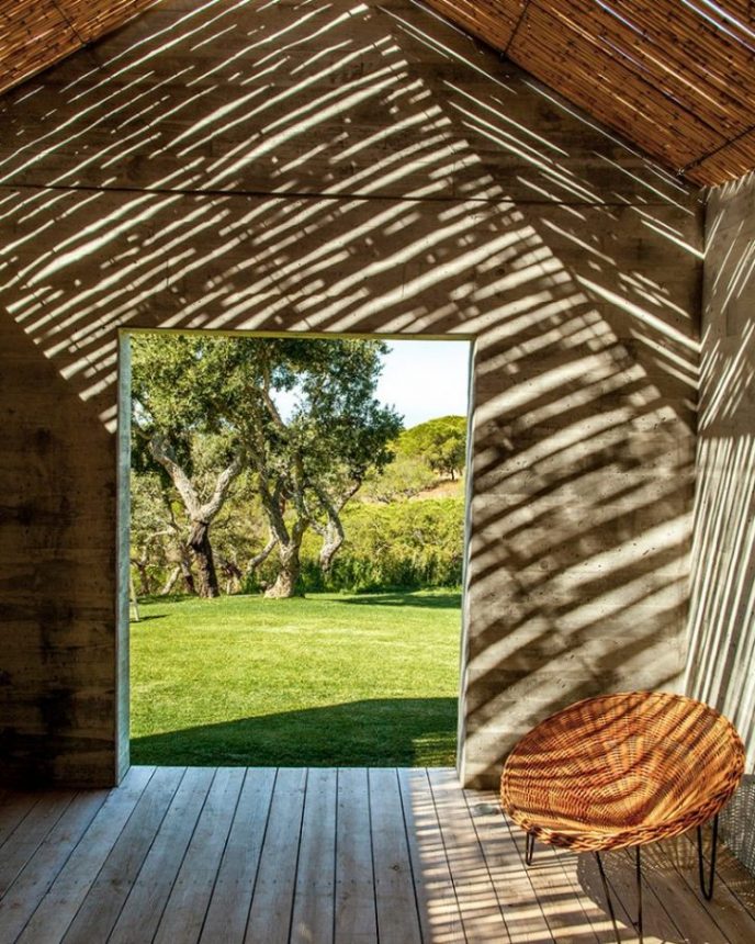 Arhitektonska firma Manuel Aires Mateus, poznata po minimalističkom dizajnu, dizajnirala je ovaj kompleks vikendica, piše Designboom. Minimalizam su primenili i u ovom slučaju! Sve je jednostavno i svedeno – tako je i sa fasadom. Jedino što razbija monotoniju jesu šare na fasadi od drvene oplate koja je korišćena kod betoniranja zidova. Rezultat je sjajan i potpuno odgovara ruralnom krajoliku Portugalije.