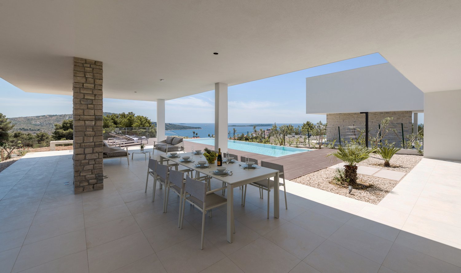 Jedinstveni unutrašnji i spoljašnji prostori ove dve kuće lišeni su svih suvišnih elemenata kako bi se moglo uživati u ambijentu Jadranskog mora.