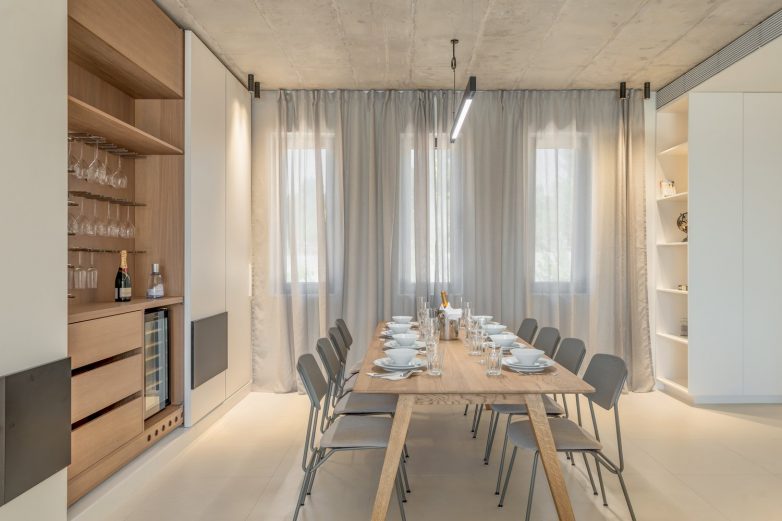Koncept enterijera se zasniva na minimalizovanju granica spoljašnjeg i unutrašnjeg prostora.