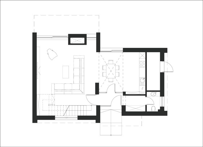 Funkcionalna organizacija prostora jasno razdvaja dnevnu od noćne zone. Prizemlje je koncipirano kao prostran otvoreni prostor koji se sastoji od dnevne sobe, trpezarije i kuhinje. Stepenice su deo dnevne sobe, projektovane kao vizuelni akcenat, dok je galerija iznad trpezarije tu da prostoru da osećaj prostranosti i luksuza zahvaljujući dvostrukoj visini.