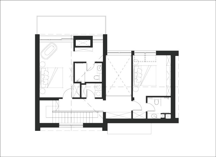 U potkrovlju se nalaze dve spavaće sobe sa zasebnim kupatilima, svaka sa pogledom na Drinu. „Najimpresivniji panoramski prizor otvara se sa balkona velike spavaće sobe, gde žubor reke i šuštanje lišća stvaraju osećaj mira i potpunog udaljavanja od svakodnevice“, naglašavaju iz tima.