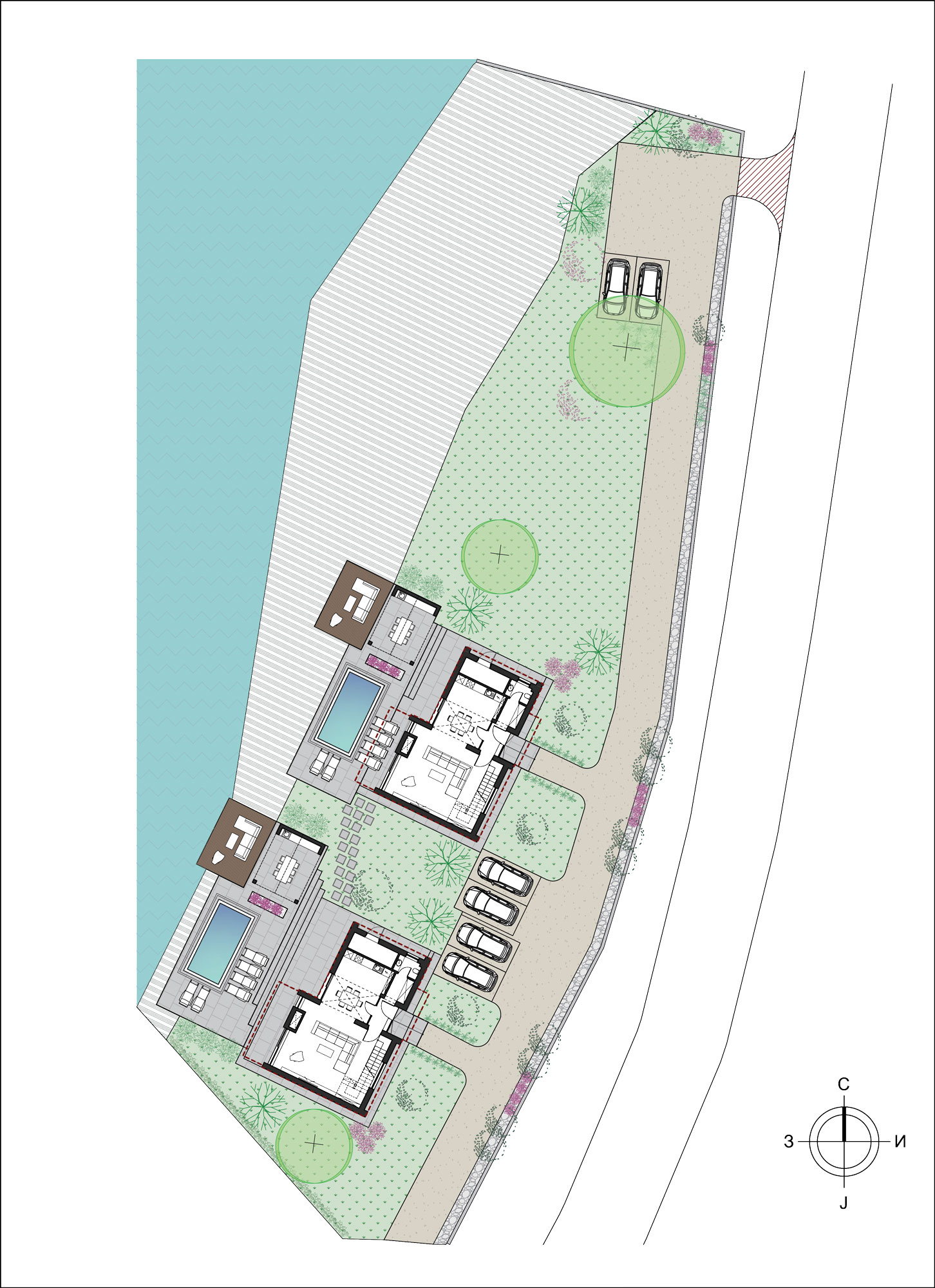 „Rešeni su kroz pažljivo projektovanje nagiba, izbor kvalitetnih obloga i promišljen dizajn koji naglašava sinergiju između objekata i pejzaža. Rezultat su dve savremene, elegantne vile koje se diskretno stapaju sa okolnim šumama i rekom, ističući ono što je najvažnije – pogled, prirodu i mir“, navode na kraju iz autorskog tima.
