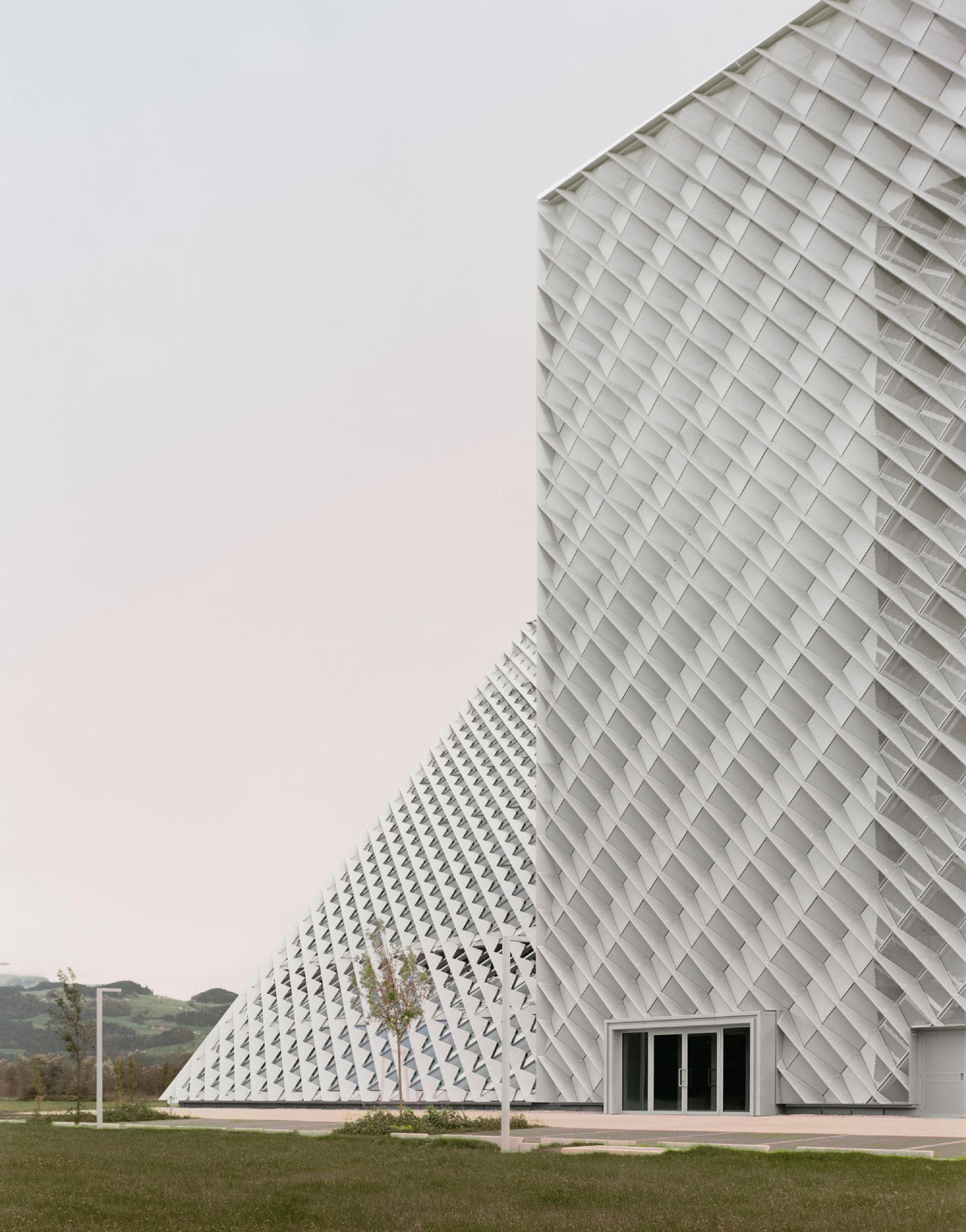Arhitekte iz Barselone osmislile su sedište tako da volumen nastaje spajanjem dva piramidalna tela, a vidljiv je sa auto-puta koji povezuje Nemačku i Austriju, sa ciljem da postane deo pejzaža koji definiše ovaj kraj. Volumetrijska kompozicija zgrade teži da pojača osećaj visine, igrajući se sa okolnim elementima poput brda i dolina.