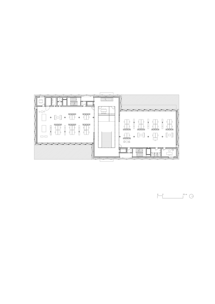 Uprkos prozračnom i jednostavnom volumenu, preseci otkrivaju bogatu prostornu dinamiku koja unapređuje iskustvo ove multifunkcionalne zgrade od 10.000 kvadrata, kako za zaposlene tako i za posetioce, podstičući njihovu interakciju kroz različite prostorne perspektive, objasnile su na svom sajtu arhitekte.