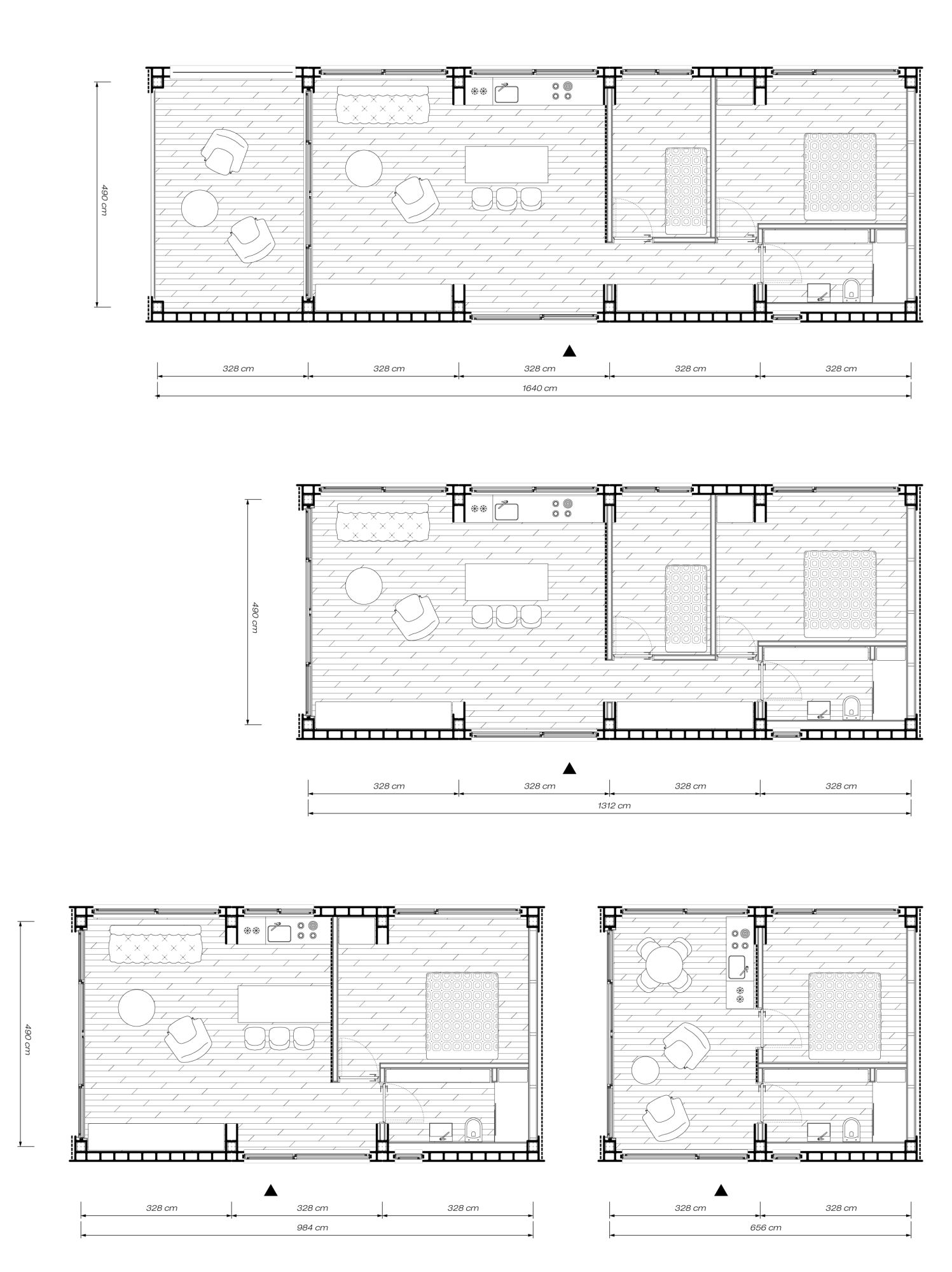 Arhitekte su konceptom predložile četiri osnovna tipa kuća – S, M, L i XS. Tipovi kuća S, M i L predstavljaju varijacije klasičnih kuća, konfigurisanih od 3, 4 i 5 modula, koji se mogu dodatno prilagoditi različitim tipovima modula.