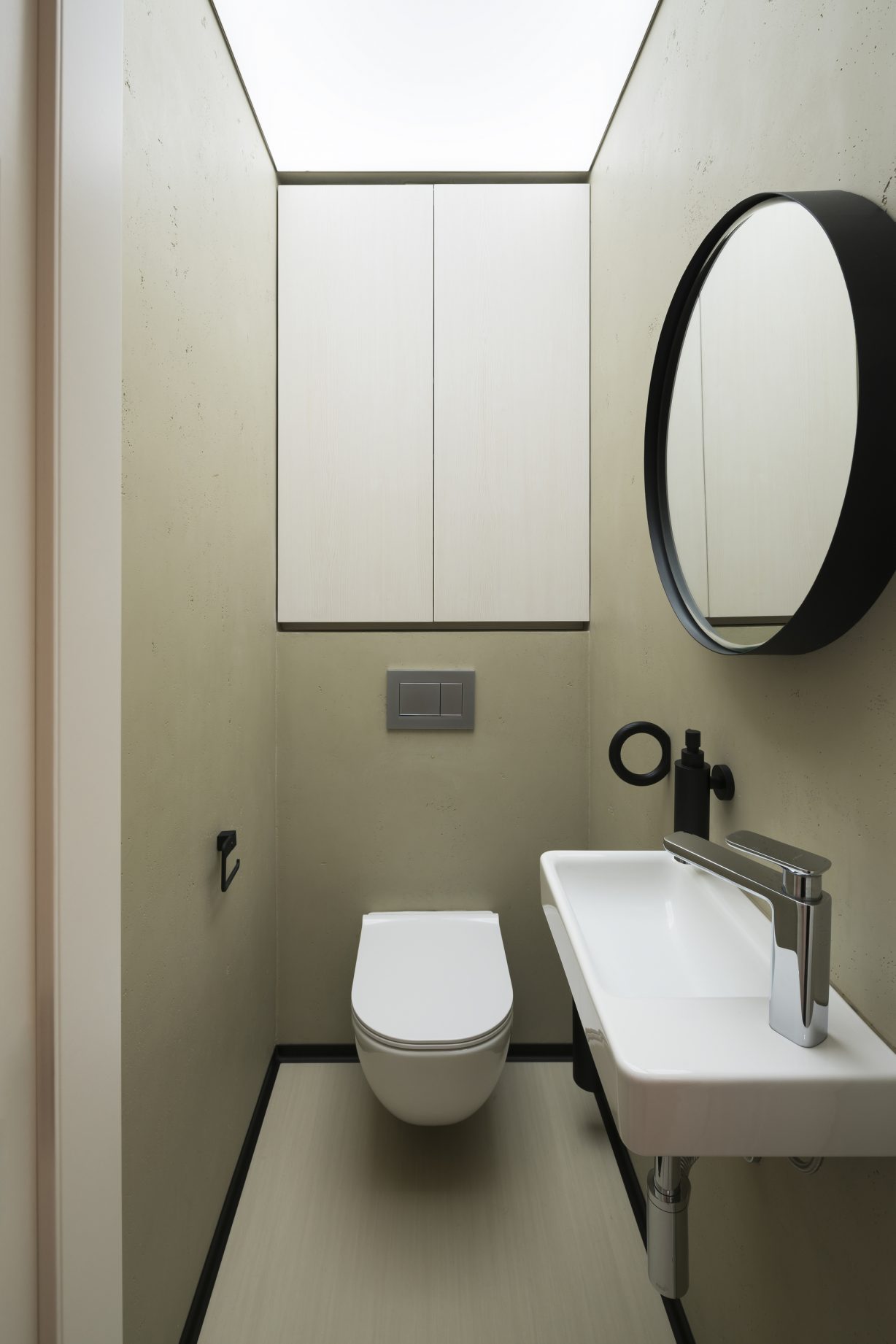 Centralni motiv enterijera je lagano „oslikavanje“ prostora svetlom i senkama, podržano ritmičnom kombinacijom materijala i boja, piše ArchDaily.