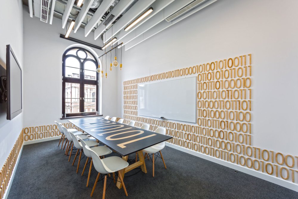 Inspiracija za uređenje konferencijske sale bila je, na primer, računarski delovi. Soba je okrečena u zelenu boju baš onu koja se koristi za matične ploče, konferencijski sto sa svojim nogicama podseća na procesor dok je tabla inspirisana integrisanim kolima.