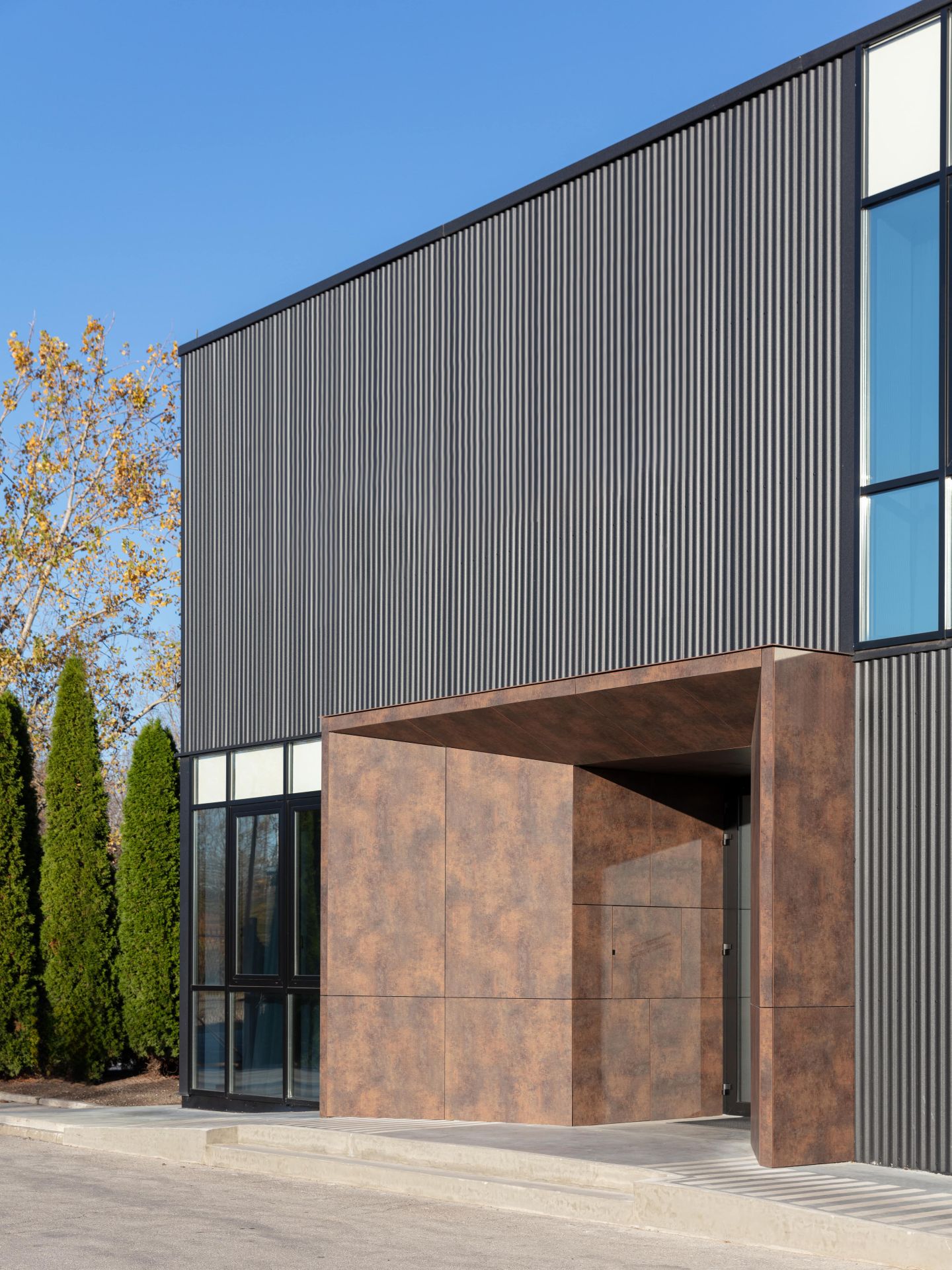 „Time se novi objekat vizuelno nastavlja na postojeće objekte i reflektuje karakter kompanije, a povećava trajnost, otpornost i energetsku efikasnost objekta. Kompakt paneli u tonu kortena takođe naglašavaju industrijski karakter klijenta“, kažu arhitekte.