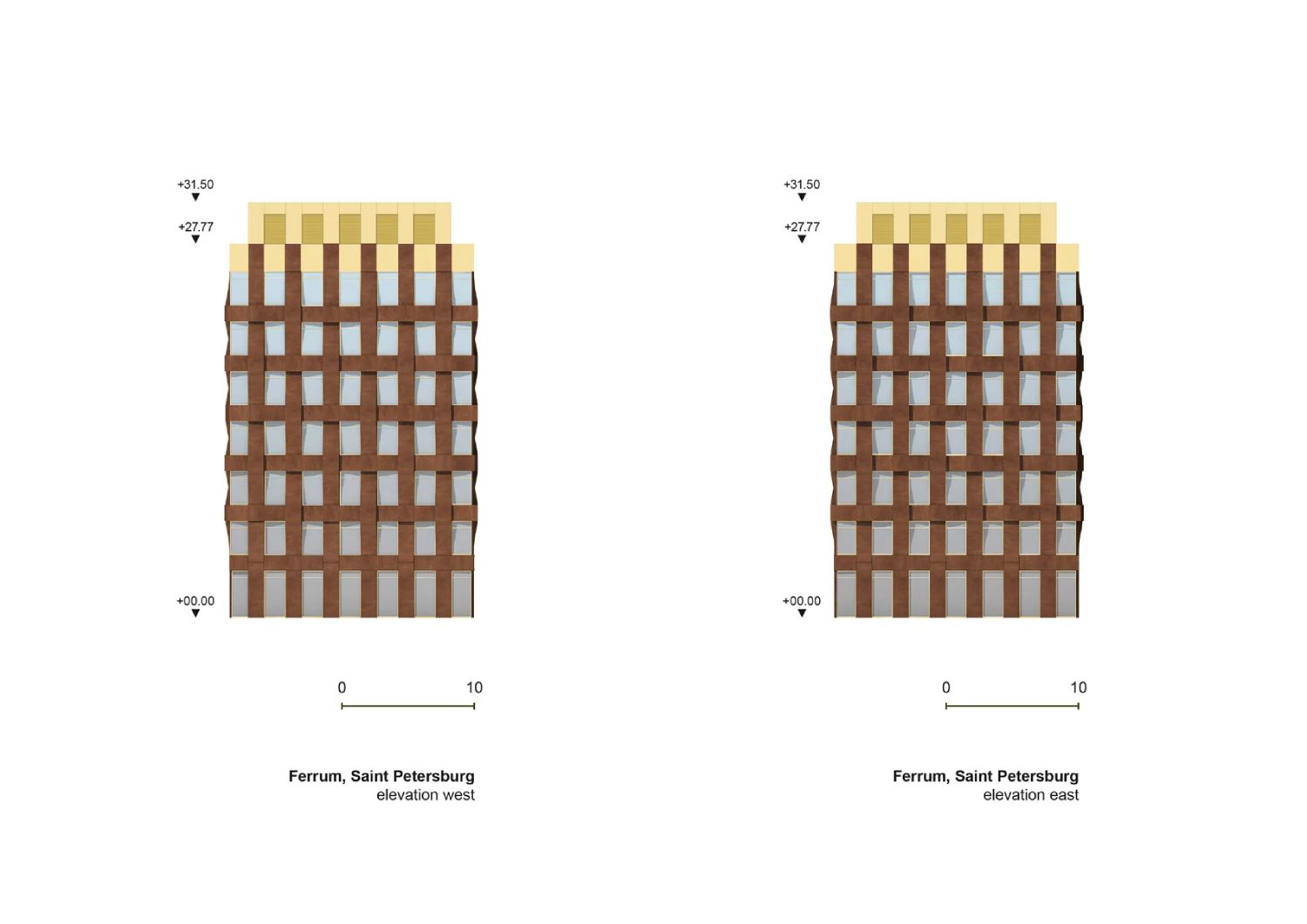 Sedmospratni poslovni objekat Ferrum 1 u Sankt Peterburgu, za koji projekat potpisuje arhitekta Sergei Tchoban, jedna je od nekoliko zgrada koje je njegov studio projektovao u krugu bivše fabrike Rossiya u distriktu Polustrovo. To je jedna od prvih zgrada u Rusiji izgrađena primenom skulpturalne fasade od Corten čelika koji joj je dao spektakularan izgled.