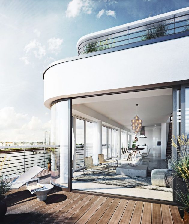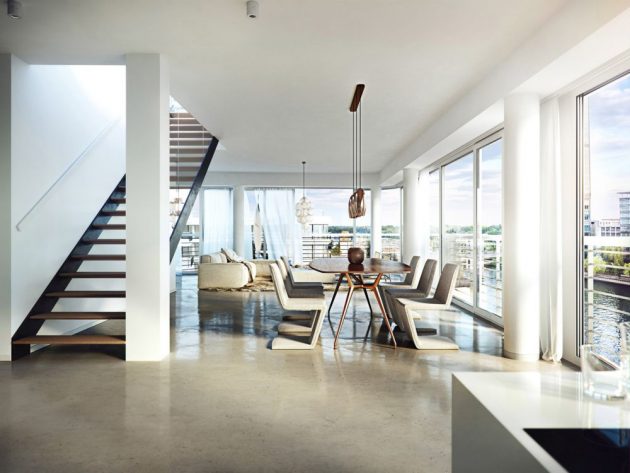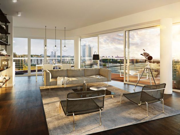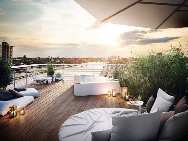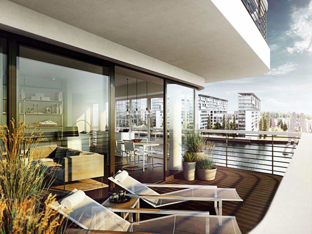 Blok Wave imaće na raspolaganju razne stanove za svačije potrebe. Od garsonjera od 27 kvadrata, preko petosobnih stanova od 156m2 pa sve do penthausa od 296 kvadrata sa pristupom zelenom krovu. Većina stanova ima balkon s pogledom na reku ili barem prozore koji pružaju da se sagleda Špreja.