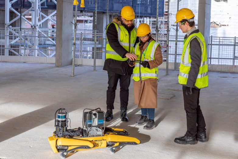 Ova četvoronožna mašina, koja može da se kreće uz i niz stepenice kao i preko neravnog terena, skenira lokaciju, snima fotografije u 360 stepeni i sve to beleži u online dnevnik stvarajući tako digitalnu arhivu o projektu u realnom vremenu.