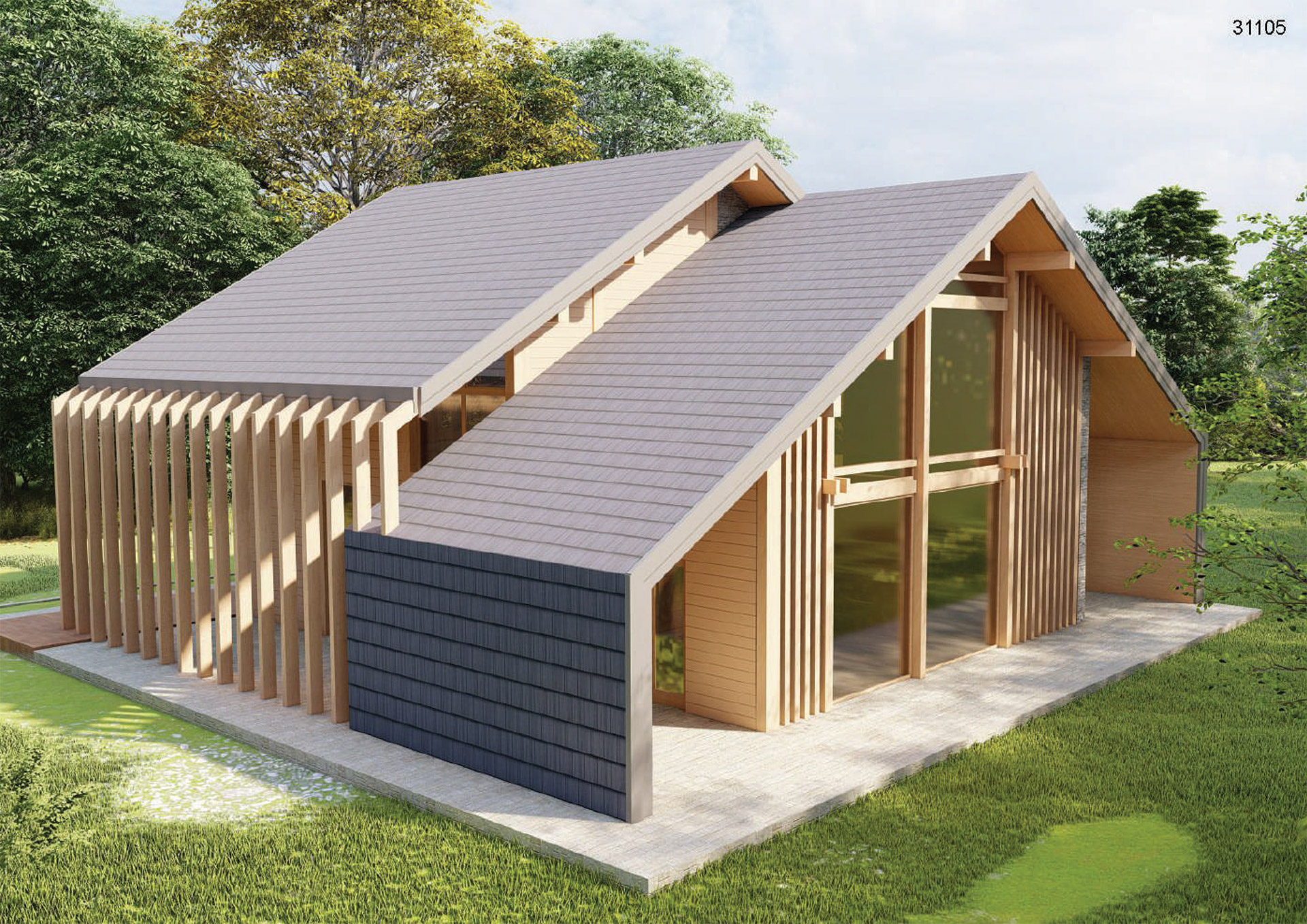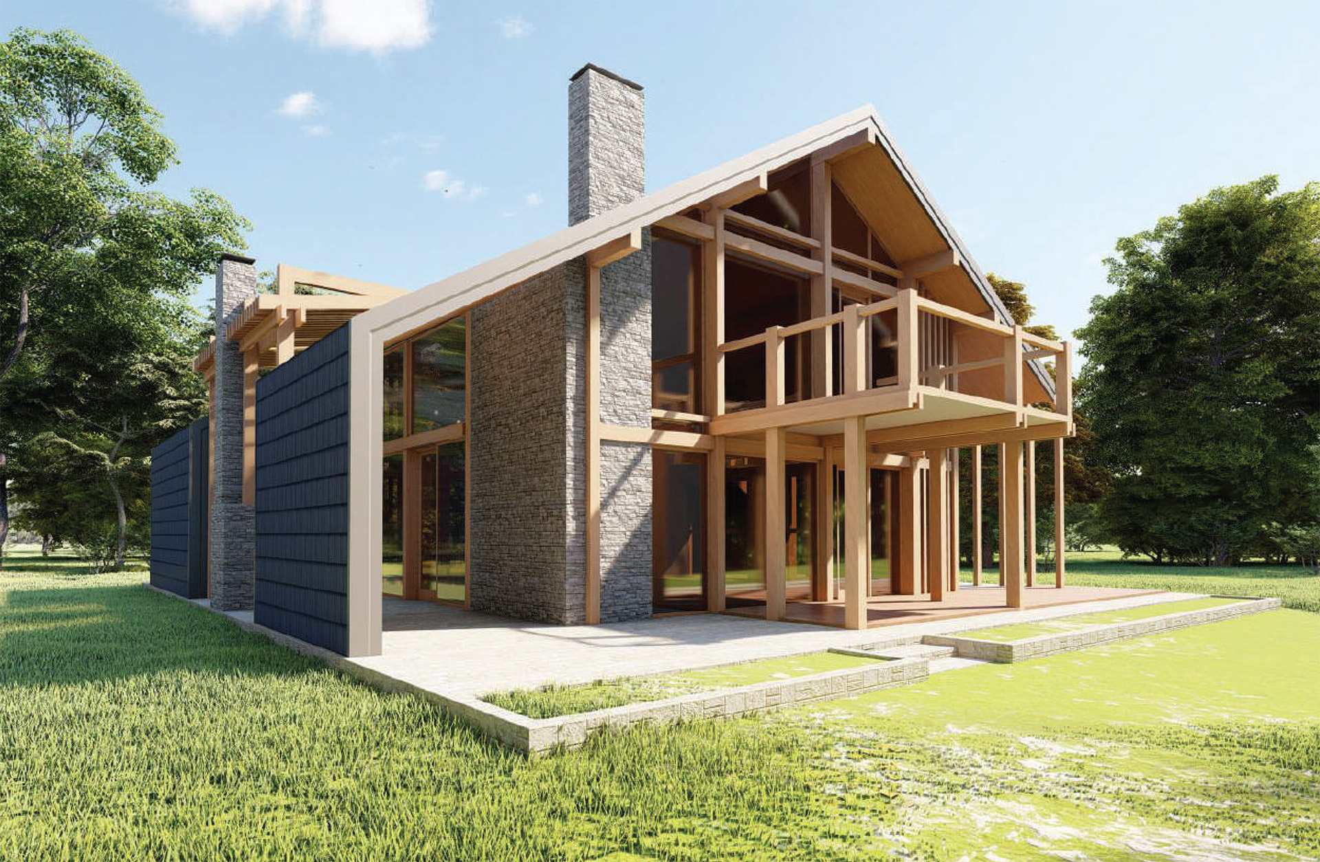 Konstruktivni sklop je koncipiran kao montažni objekat na zidanoj bazi – suterenu, odnosno ploči prizemlja. Nadzemni deo objekta – spoljnji zidovi i krov projektovani su kao drvena konstrukcija o lameliranog drveta, ispunjena savremenim еnеrgetski-efikasnim termoizolacionim panelima, sa završnom spoljnom obradom u vidu drvene vetrene obloge fasade, cementnih krovno-fasadnih crepova, odnosno krečenih površina u zoni enterijera trema.