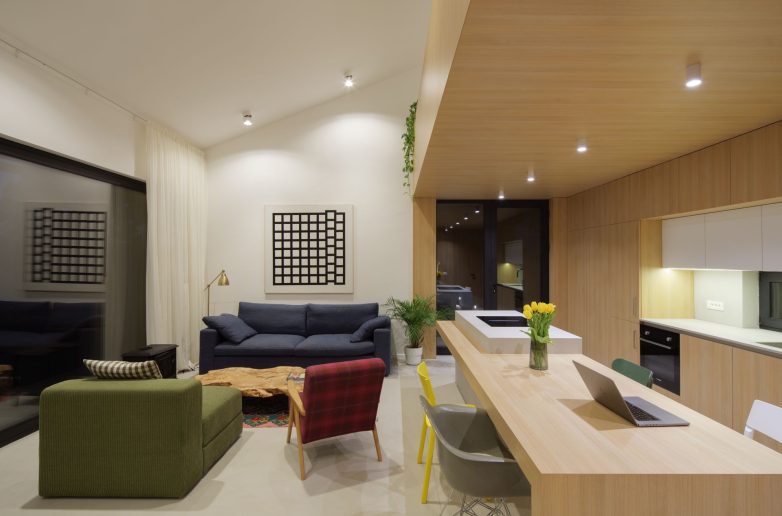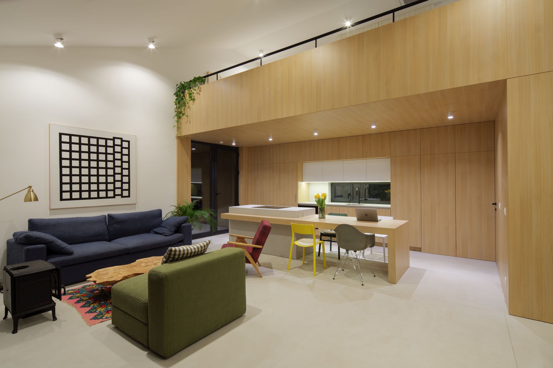 S obzirom da je prizemni nivo kompletno otvoren boravišni prostor sa kuhinjom koji korespondira sa dvorištem i tremom, a spavaći blok je sakriven na galeriji, stepenište koje vodi na galeriju je takođe sakriveno u “procepu” između unutrašnje drvene i spoljašnje fasadne envelope, navodi Lazović.