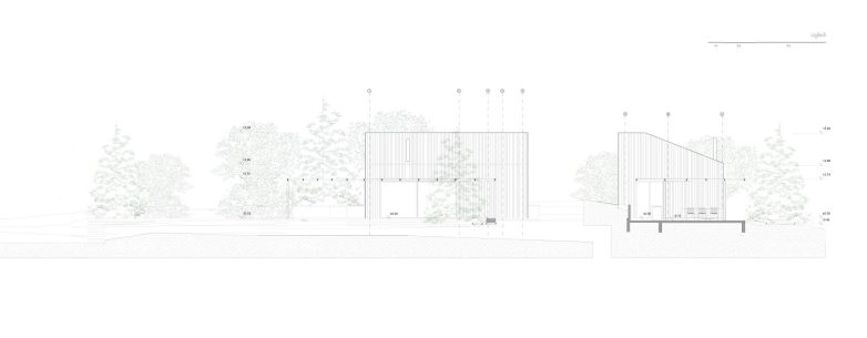 Pozicija na parceli omogućava formiranje dva specifična mikroambijenta oko kuće – jugozapadno dvorište i veliki severozapadni natkriveni trem uz ulaznu zonu.