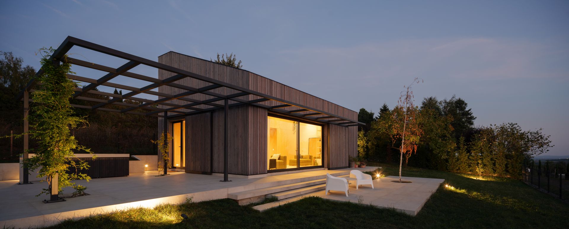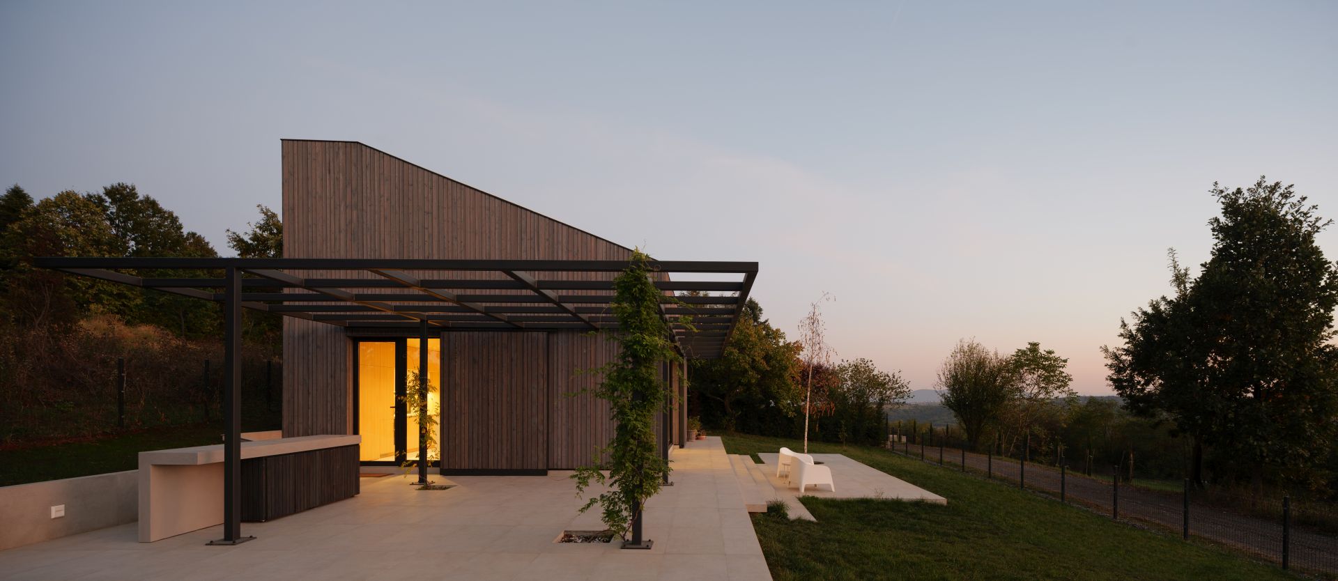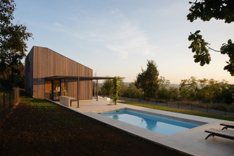 Kuća nudi nove oblikovne elemente i prostorne obrasce koji su odraz života u savremenom kontekstu u skladu sa prirodom.
