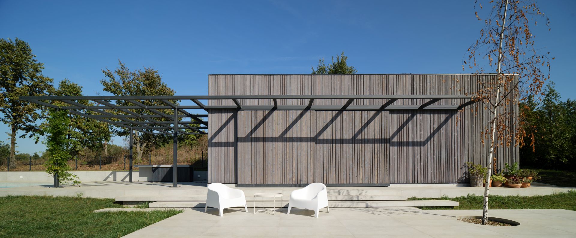 Izbor za spoljašnji omotač pao je na termotretirani ariš, ali tretiran starom japanskom tehnikom paljenja drveta.