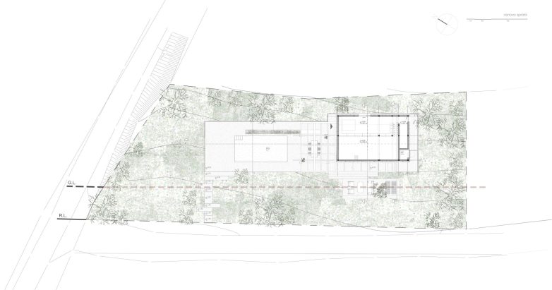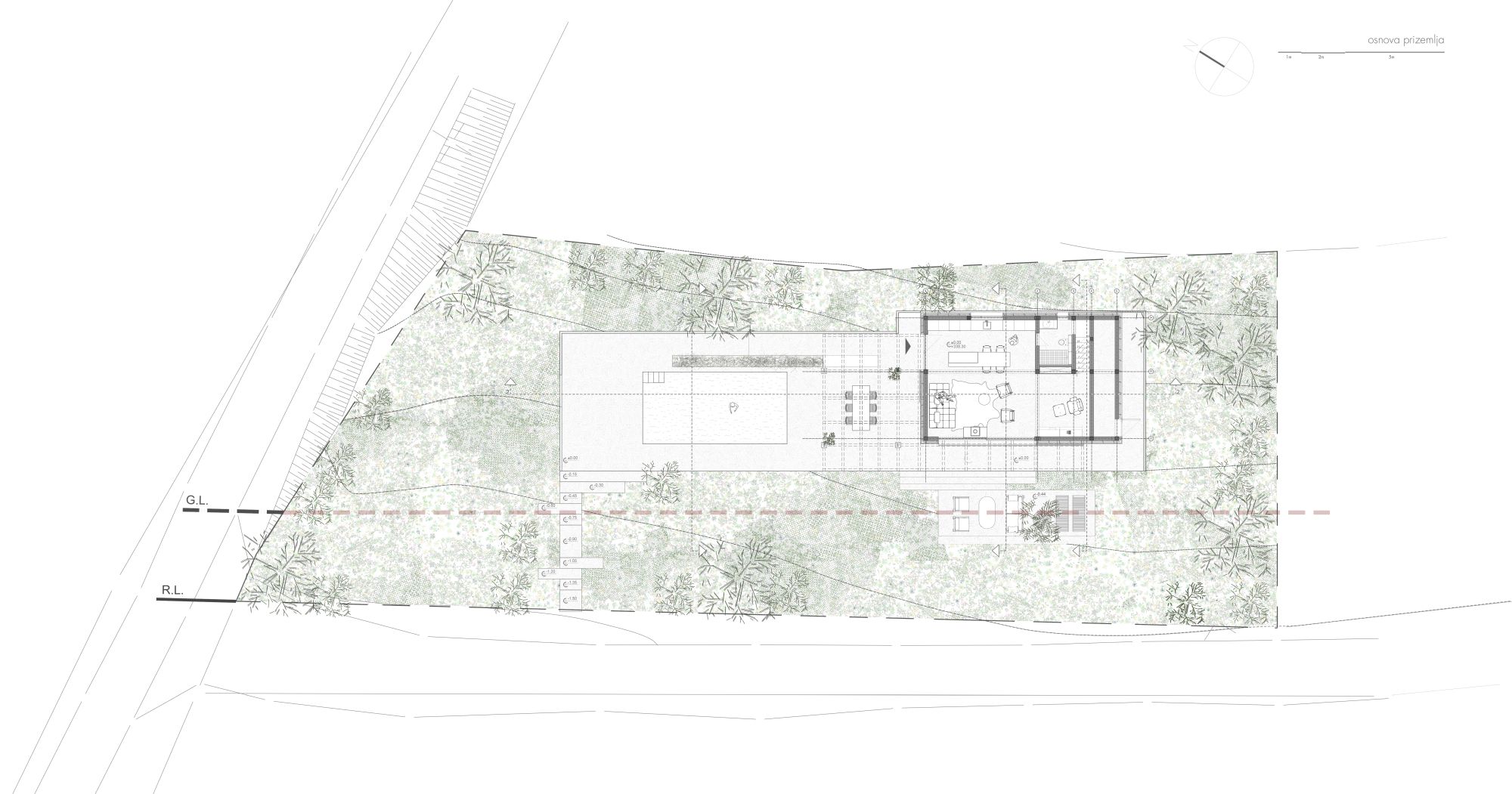 Arhitekte iz INKA studija projektovale su i urbanističku kompoziciju na parceli sa pozicijom popločanih terasa, „lebdećih stepenika“, upuštenih dvorišta u teren, popločanog trema sa bazenom i plažom, ulaznih staza, kao i staza oko kuće.