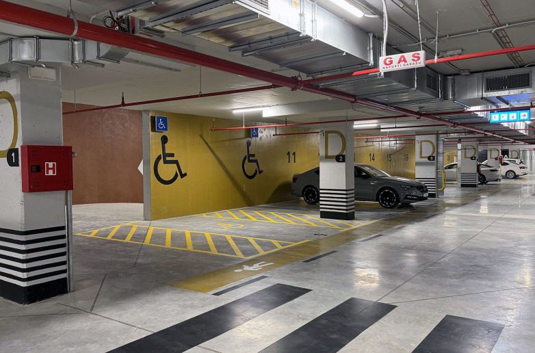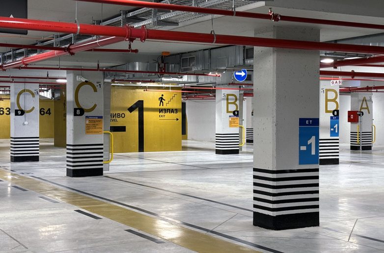 Pod zemljom je pak situacija mnogo bolja. Betonska podzemna konstrukcija na dve etaže zablistala je u punom sjaju. Žuto-crna koloritna šema izgleda atraktivno, baš kao i grafička rešenja horizontalne i vertikalne signalizacije. Parking mesta su jasno obeležena, kao i staze za pešake.