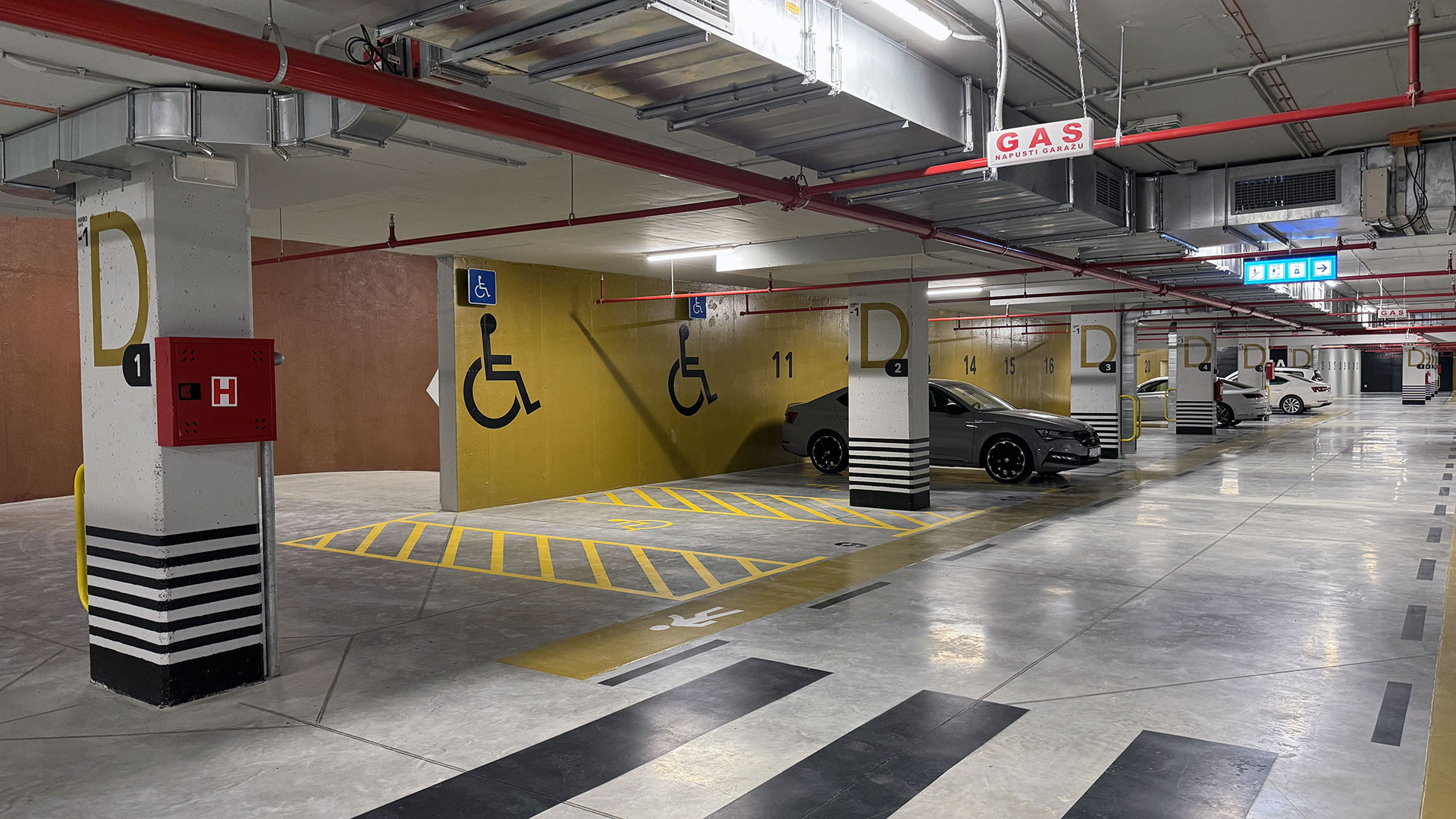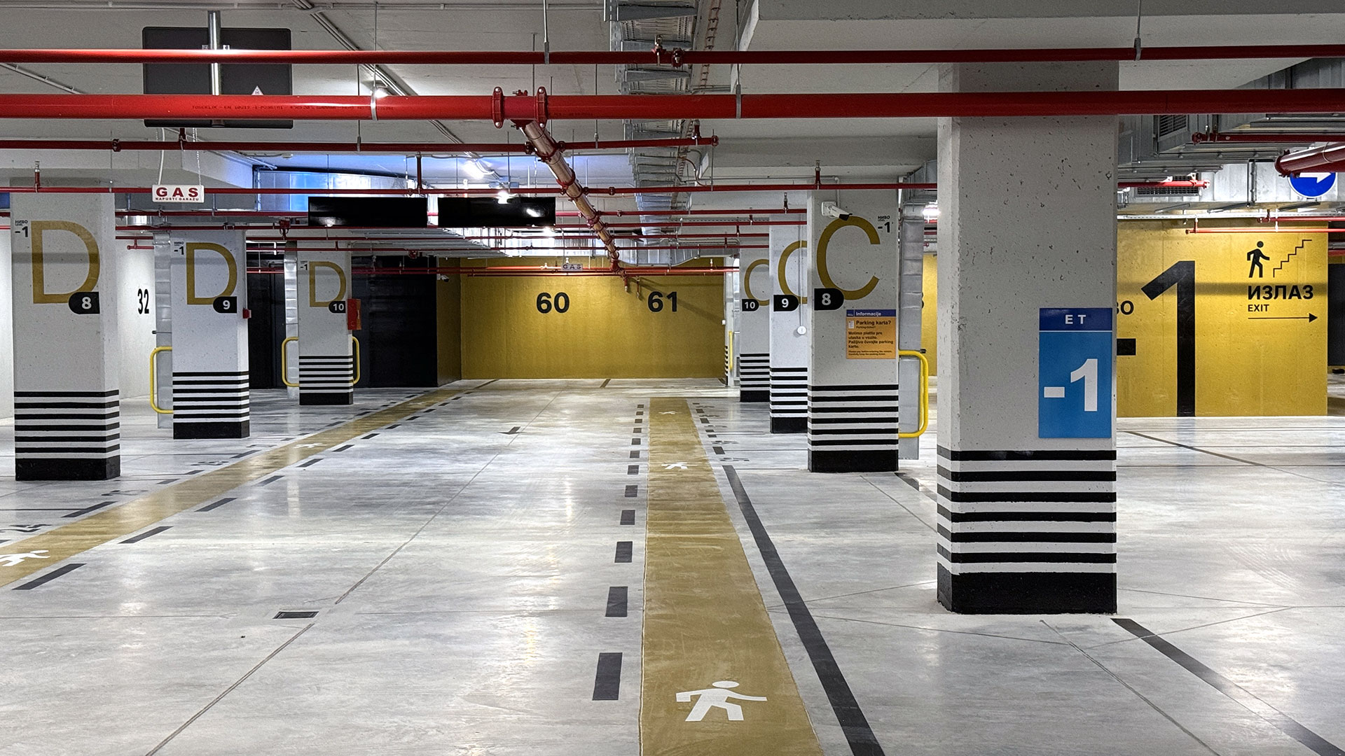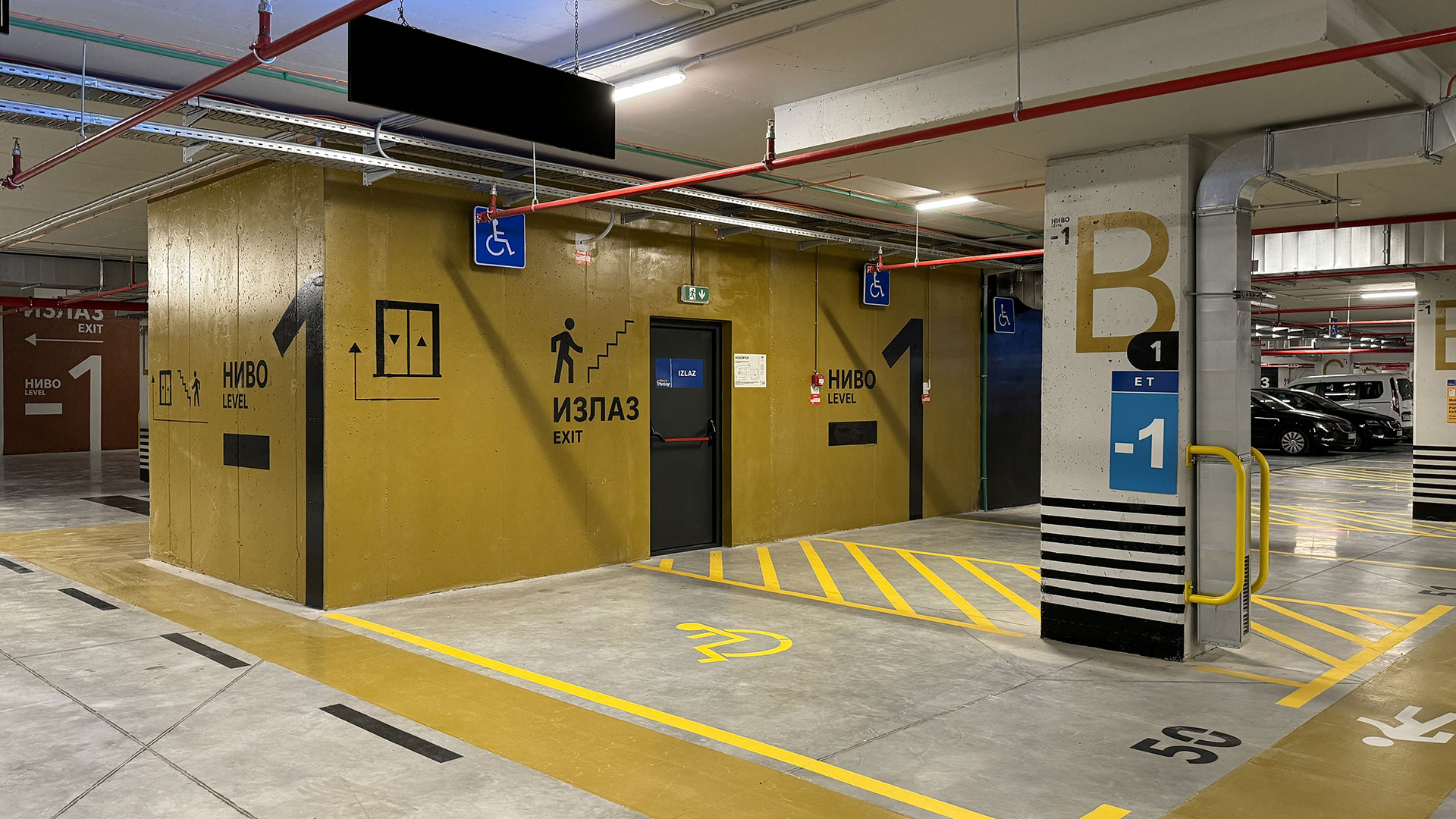 Pod zemljom je pak situacija mnogo bolja. Betonska podzemna konstrukcija na dve etaže zablistala je u punom sjaju. Žuto-crna koloritna šema izgleda atraktivno, baš kao i grafička rešenja horizontalne i vertikalne signalizacije. Parking mesta su jasno obeležena, kao i staze za pešake.