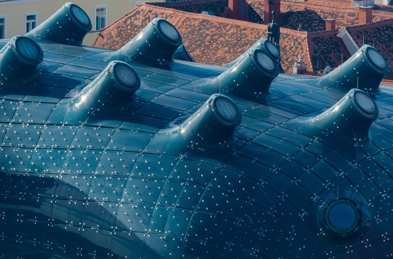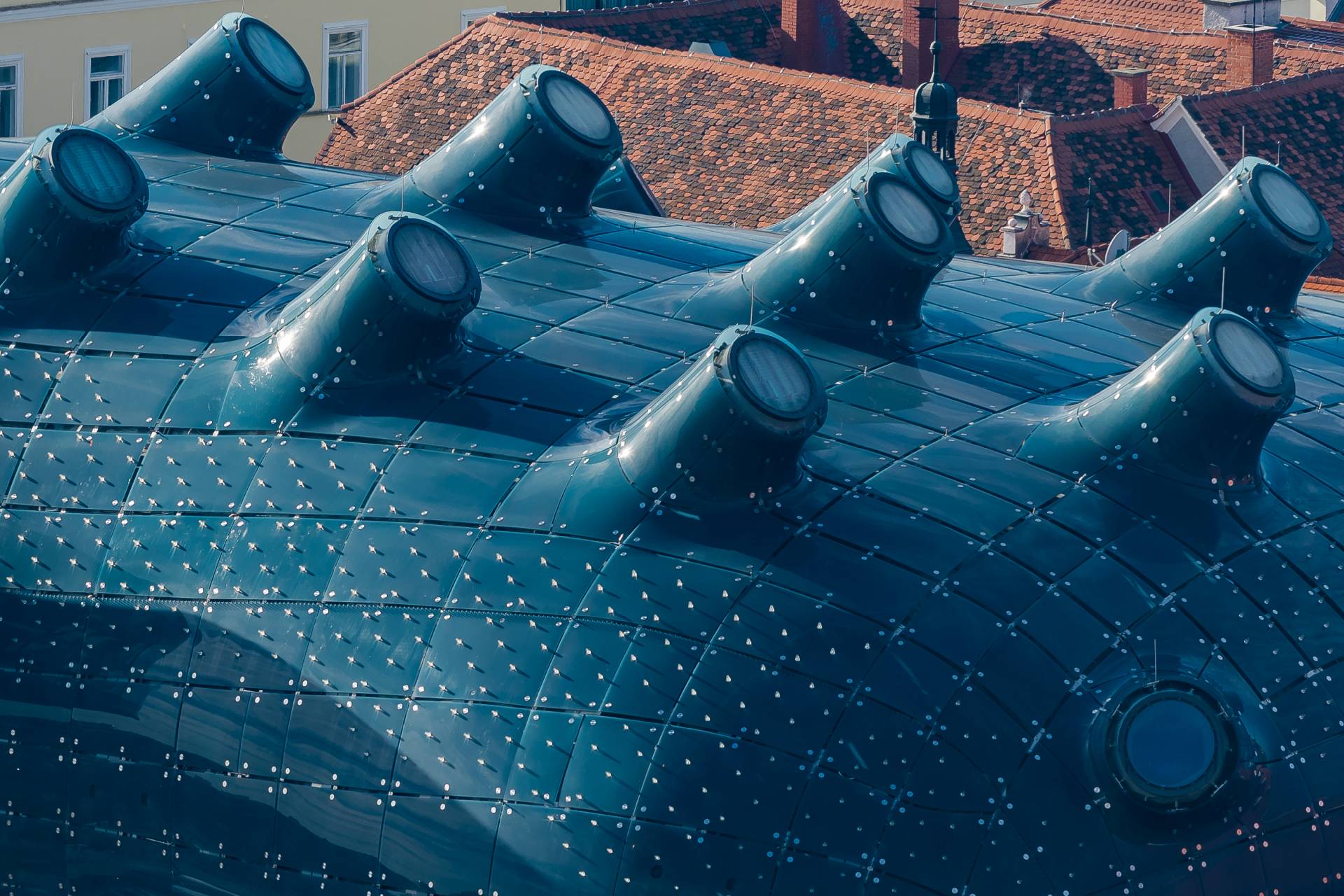 Okruglasti oblik tog „vanzemaljca“ odlično se uklapa u okruženje ispunjeno krovovima pokrivenim crepom u starom delu Graca. Iako se on tu udobno smestio, Geberit sistem odvodnjavanja krova testira se svaki puta kada pada kiša.