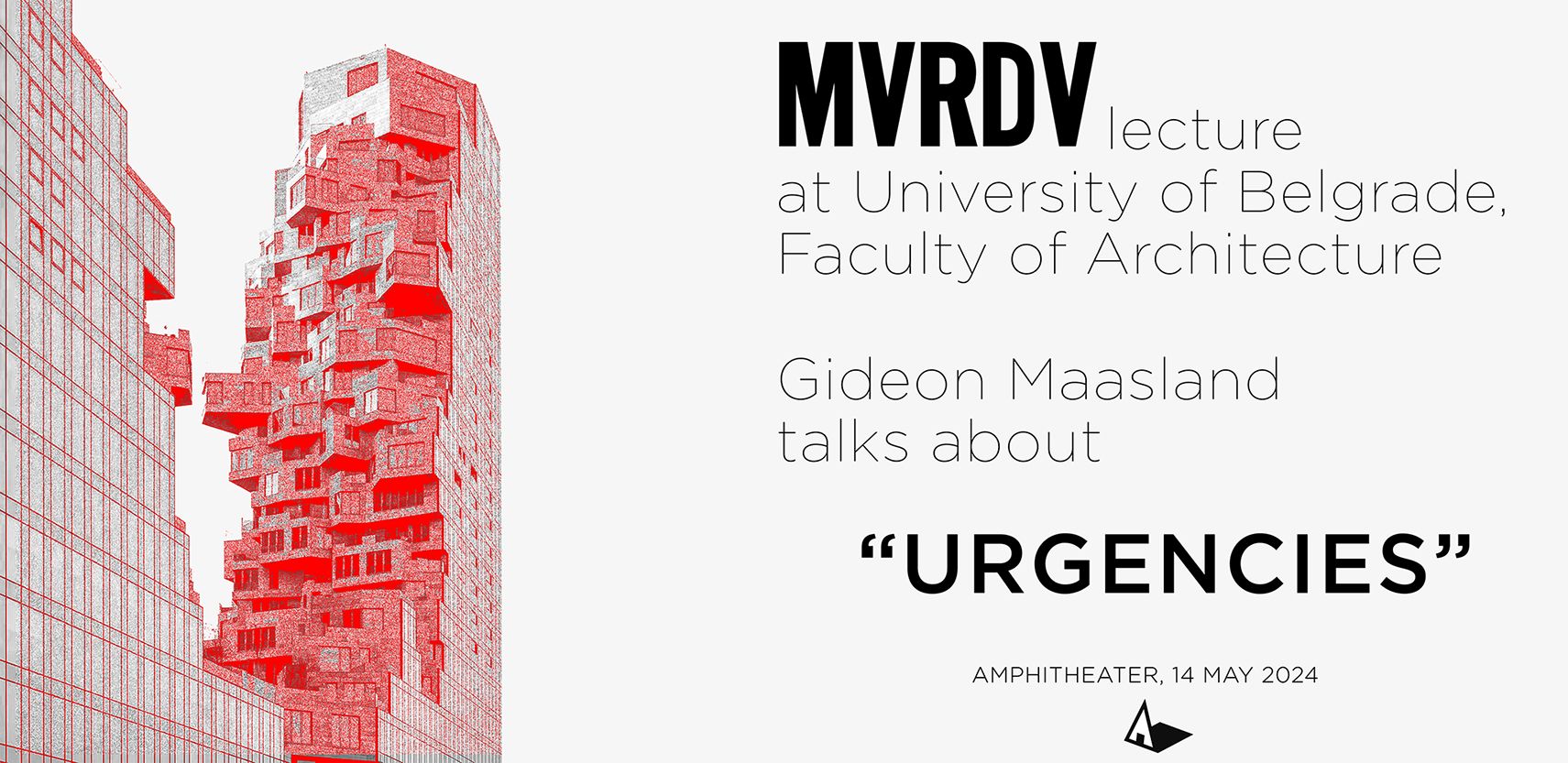 U amfiteatru Arhitektonskog fakulteta Univerziteta u Beogradu u utorak, 14. maja, biće održan set predavanja pod nazivom “URGENCIES”, koje predvodi arhitekta Gideon Maasland, direktor u proslavljenoj arhitektonskoj firmi MVRDV, osnovanoj 1993. godine u Roterdamu u Holandiji.