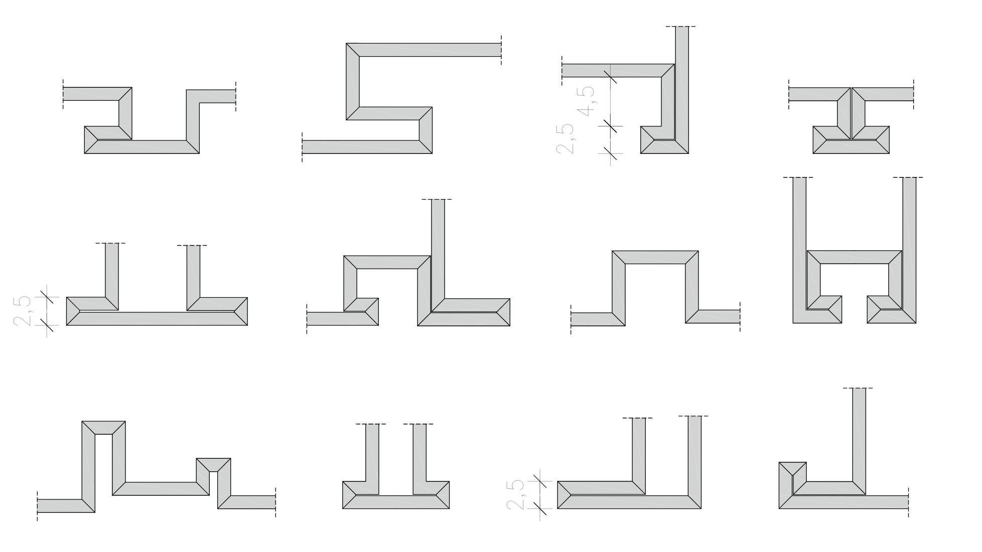 Oblici kaskada koji se na ovaj način mogu napraviti su različiti. Na ilustraciji ispod prikazali smo samo neke od mogućih formi kaskada, skrivača za LED trake i kontra skrivača ali i kanala za svetla za lampe.