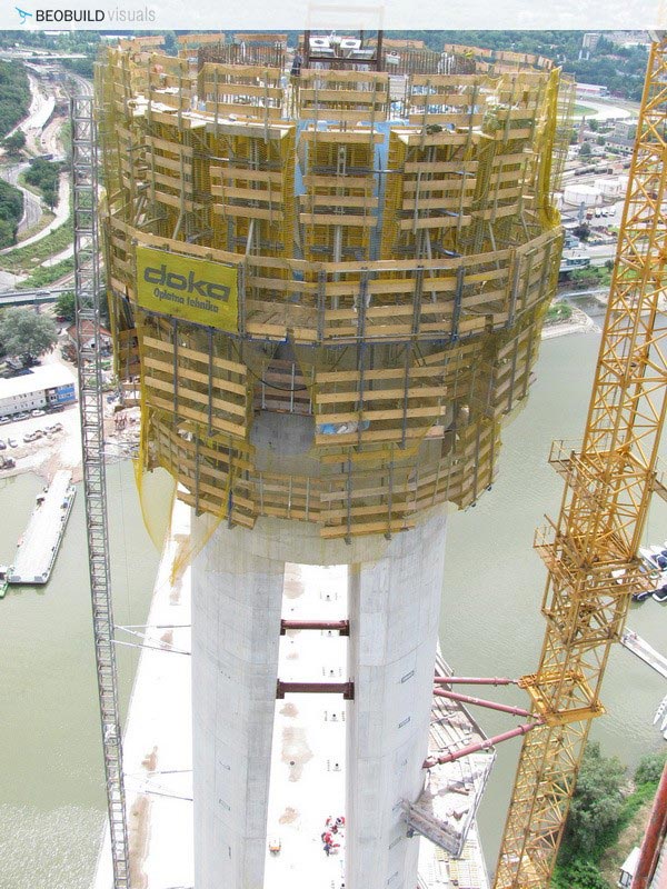 Ono što obeležava ovu građevinsku etapu jeste spajanje zadnjeg raspona sa pilonom i taj posao će biti praktično završen u narednih nekoliko dana, pošto je ostalo da se izbetonira još oko 2 metra konstrukcije. Inače konstrukcija zadnjeg raspona je dugačka 200 metara i nalaziće se na 22. metru pilona. Podsećanja radi, zadnji raspon u čukaričkom zalivu “naguran” je na privremene stubove uz pomoć hidraulike, a do početka avgusta biće spojen sa pilonom kada će krenuti ugradnja prvih kosih kablova mosta koji će prodirati u stub na 105. metru pilona.