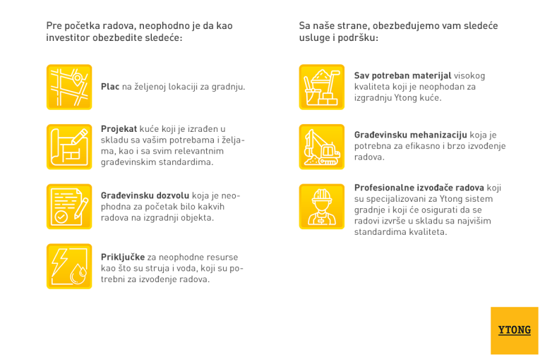 Kompanija Xella će dopremiti na gradilište sav potreban materijal, građevinsku mehanizaciju i obezbediti profesionalne izvođače radova koji su specijalizovani za Ytong sistem gradnje.