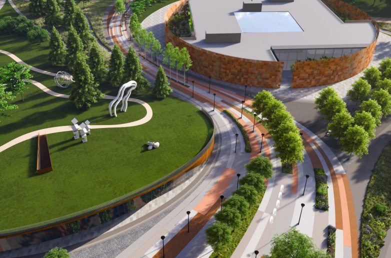 „Iznad objekata se nalaze zeleni krovovi, a kod objekata u ’procepima’ oni su vizuelno nastavak zelenih površina. Na njima je planirana sadnja ukrasnih trava i perena“ – kažu autori.