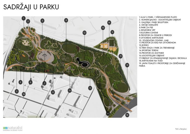 „Grad je tražio idejno rešenje novog parka kao najveće uređene zelene površine u Banjaluci koja bi pružila različite sadržaje, a istovremeno rešenje koje bi park definisalo kao još jedan zaštitni znak, jedinstvenu i inovativnu razglednicu Banjaluke“ – kažu naši sagovornici .