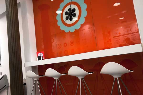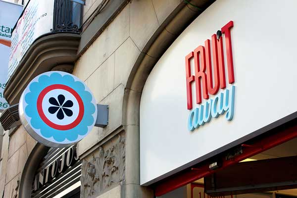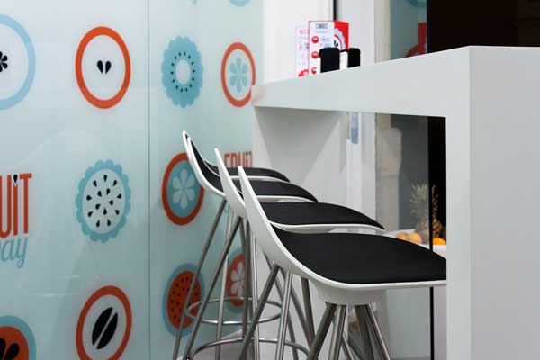 Alexander kombijuje narandžasta i plava grafička rešenja sa belim nameštajem asocirajući potrošače na svežinu voćnih proizvoda. Vlasnici kompanije Fruitaway su shvatili da moderan enterijer prilagođen potrošačima je najbolji put za ostvarivanje uspešnog poslovnog plana. U pravu su, zar ne?