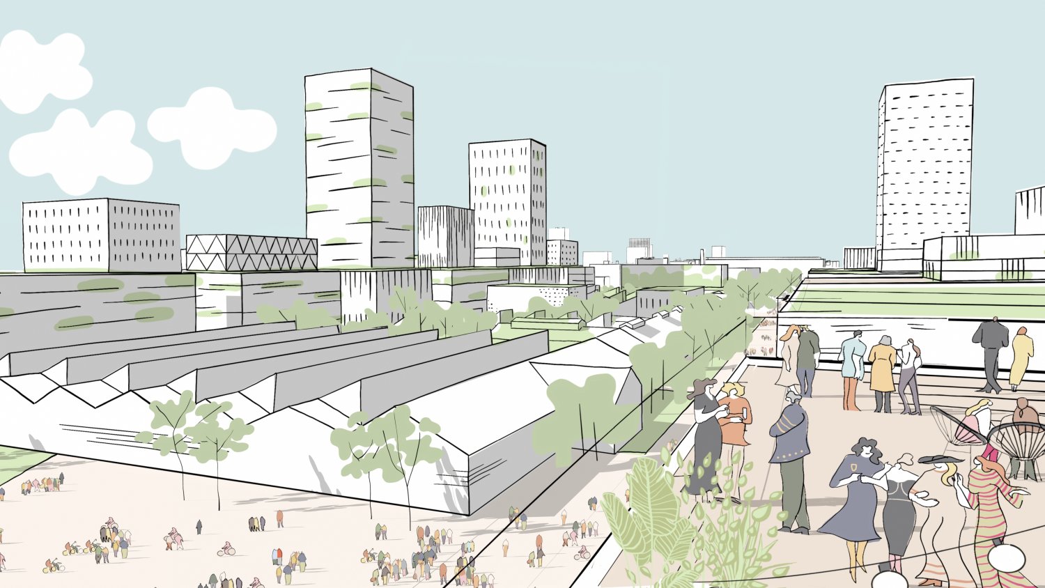 Novi savremeni blok otvorenog je karaktera i formira manje trgove i parkove u merilu susedstva, s maksimalizovanjem efikasnosti dnevnog svetla, kako bi se stvorili najbolji mogući uslovi za život i rad. Ujedno, industrija bi bila uklonjena iz neposredne blizine centra grada.