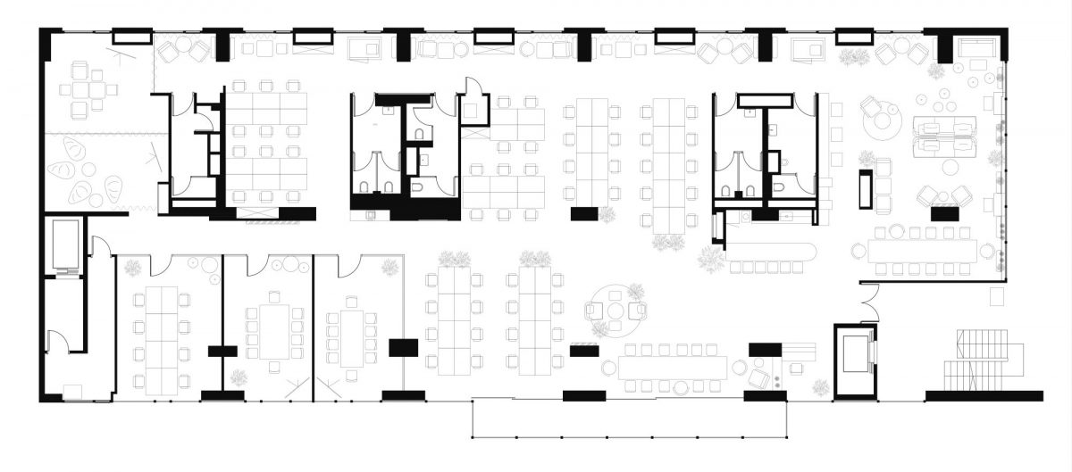 Otvoreni prostori su dizajnirani konciznije. Ovde je akcenat bio na fokusiranom radu tima, pošto je ceo otvoreni prostor podeljen između različitih startapa.
