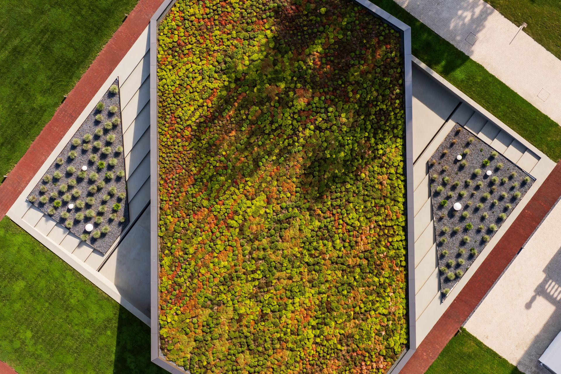 Zelena, peta fasada tj. krov bazenske zgrade zapravo je najvažnija fasada jer se upravo ona sagledava s najreprezentativnijeg prvog sprata Kurije.