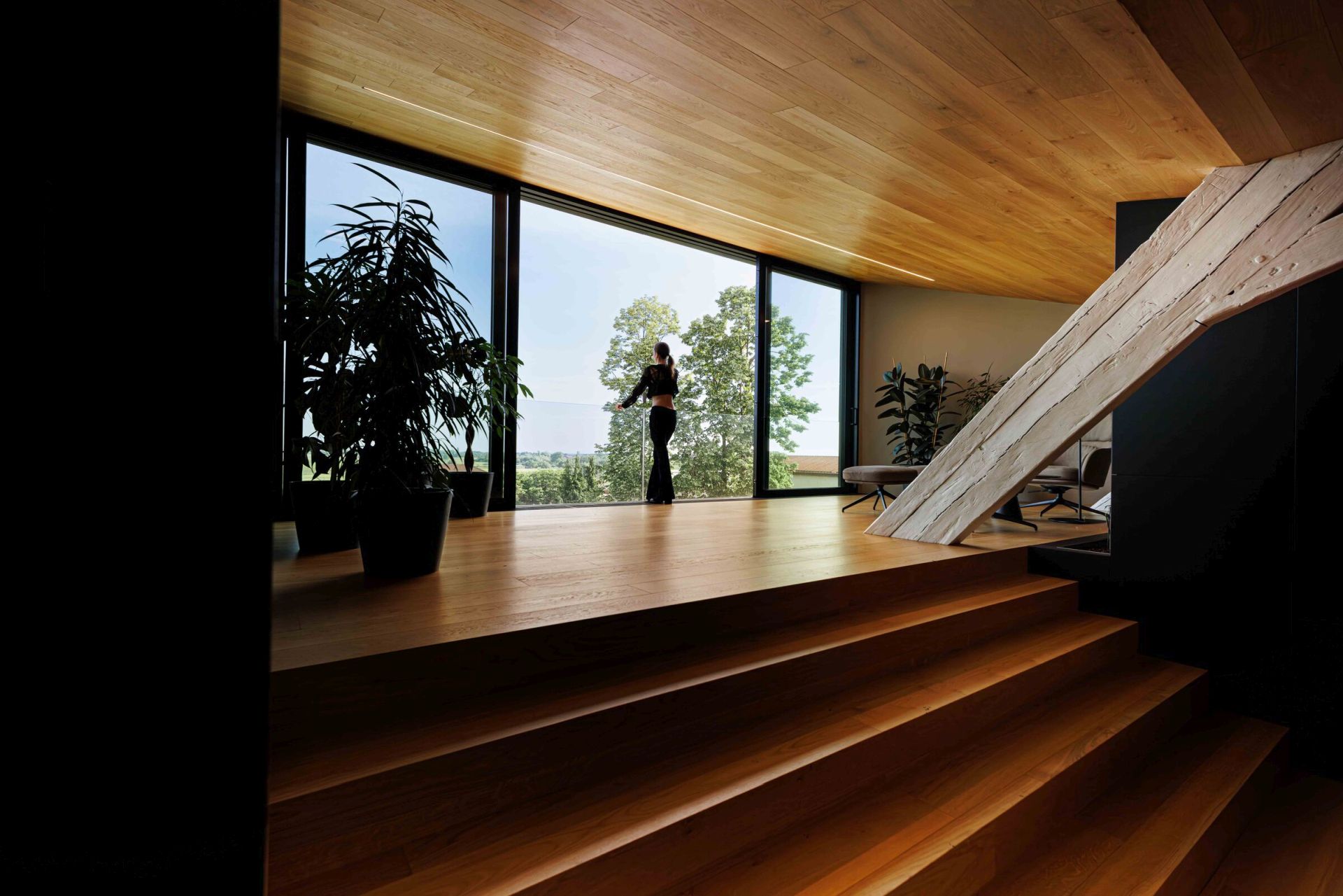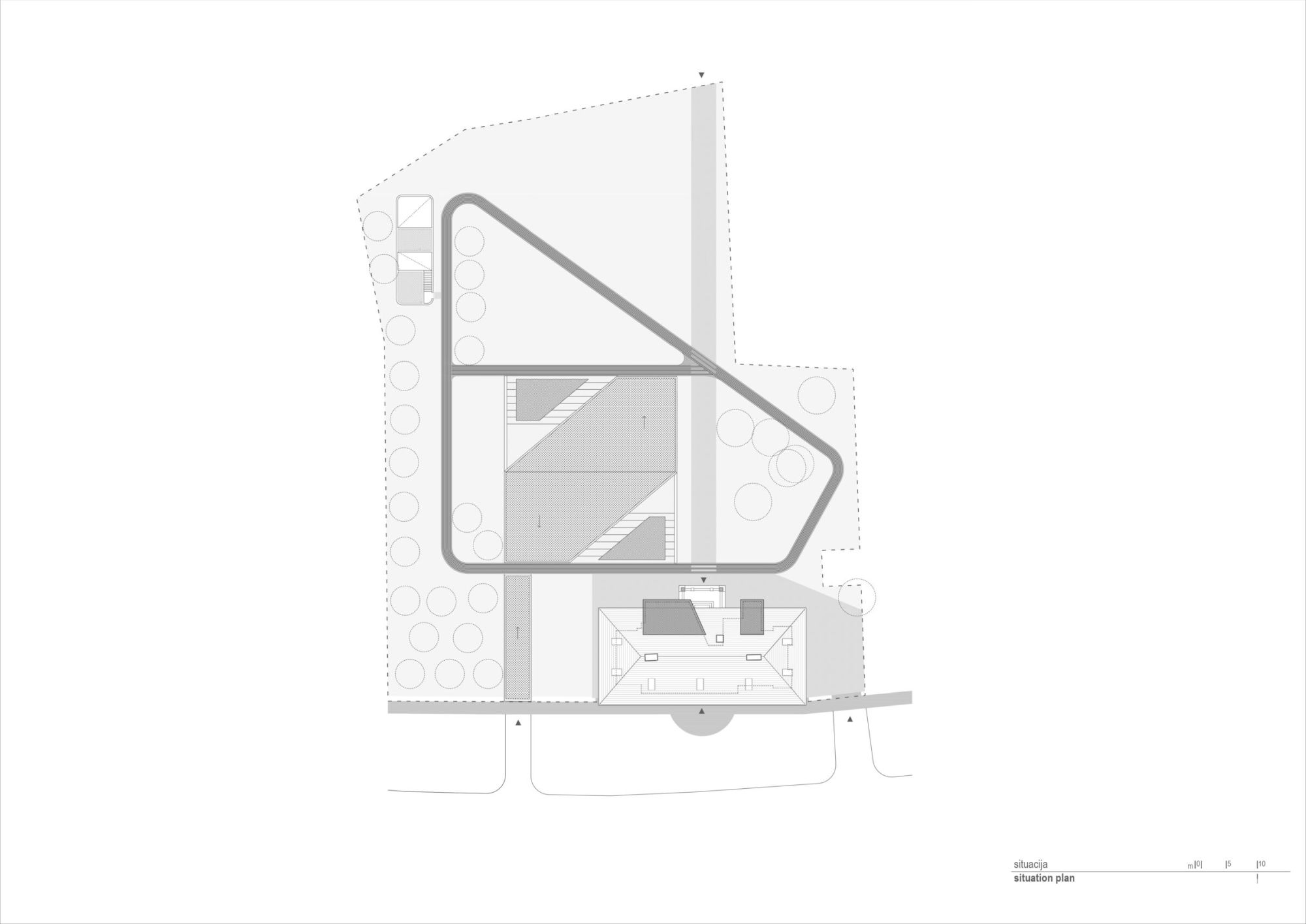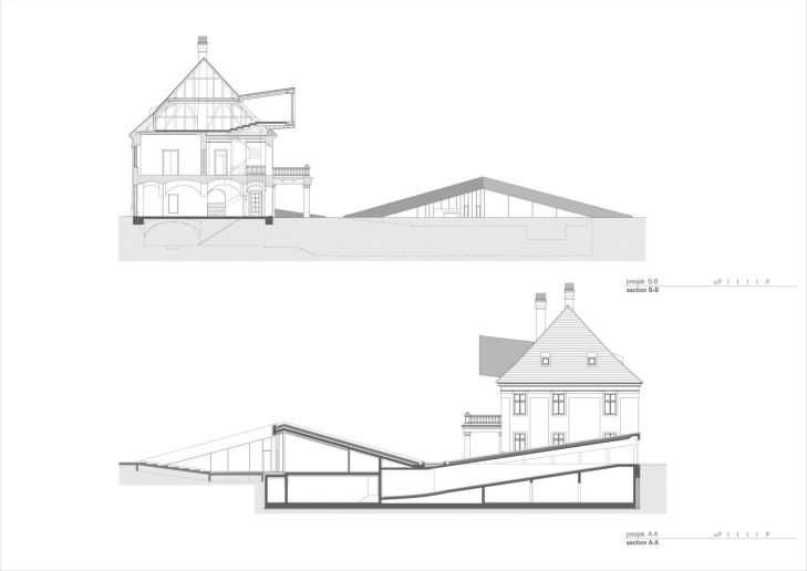 U neiskorišćeni krovni prostor zgrade iz 18. veka uglavljen je novi volumen, koji na dvorišnoj strani izbija kroz krovnu ravan u formi vidikovaca.