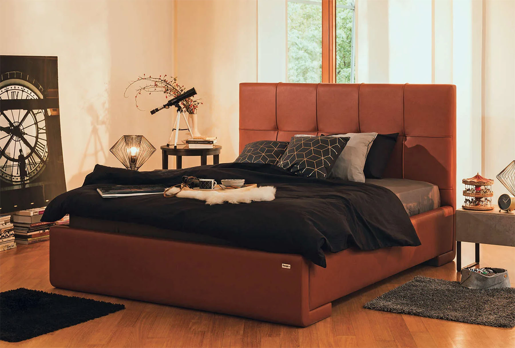 Za ljubitelje vrhunske udobnosti i harmonije, rešenje je novitet na tržištu Srbije, krevet Hera. On ima raskošno tapacirano uzglavlje visine 122 cm, koje dolazi do izražaja, a izdvaja ga funkcionalnost prednjih fioka kao idealno rešenje za sobe u kojima sa bočnih strana nema dovoljno prostora i svaki milimetar u prostoru je od velikog značaja.