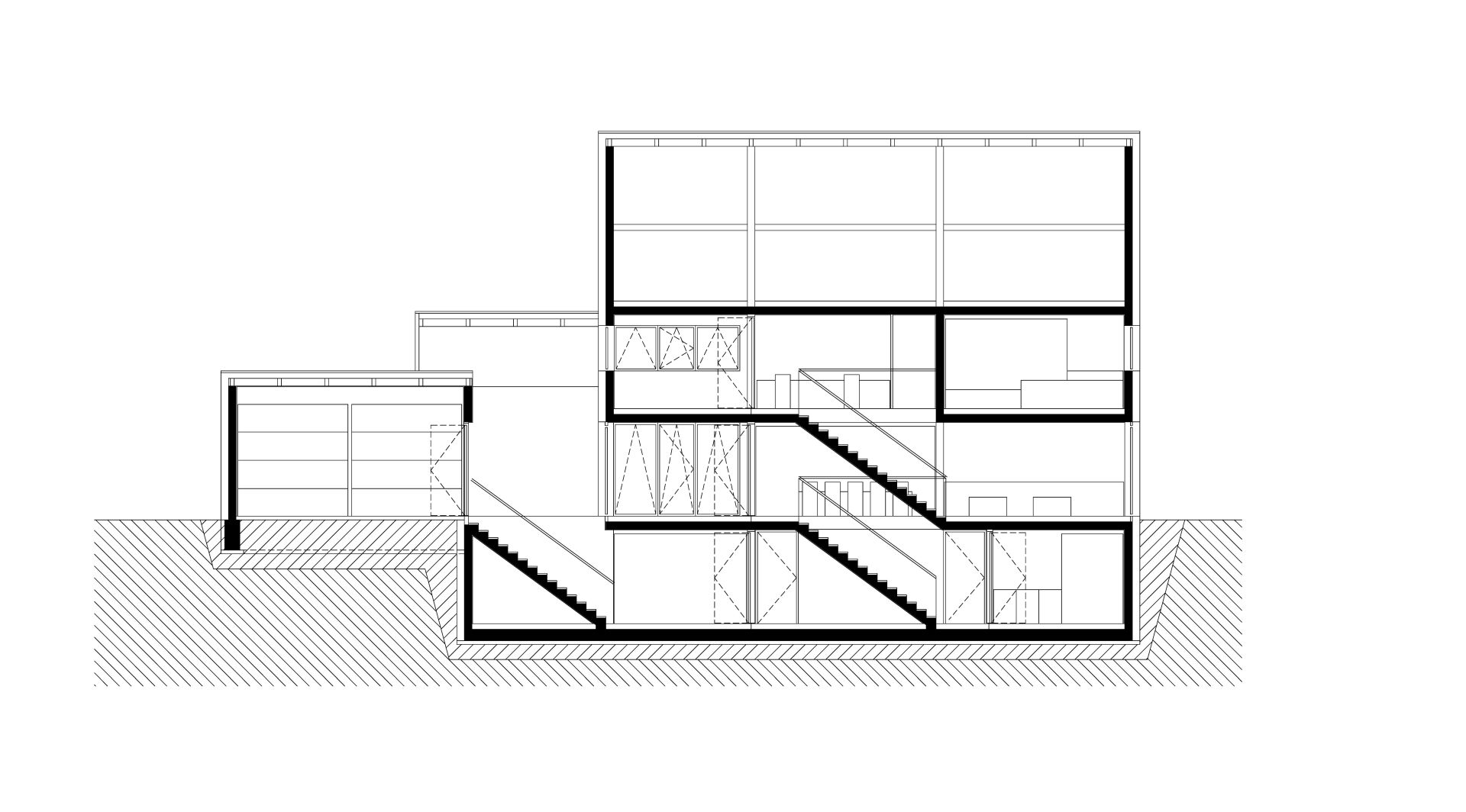 U prazninama između pojedinačnih kubusa, kuća stvara atrijume i terase koje služe kao zelene tampon-zone između enterijera i eksterijera i istovremeno obezbeđuju dodatno osvetljenje prostorija.