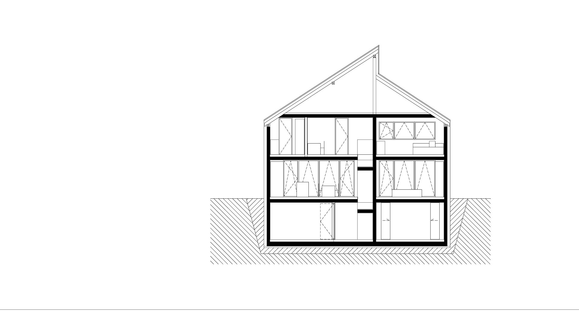 Krov ove kuće se materijalom povezuje sa fasadama i svojom raznovrsnošću formira svojevrsnu veštačku topografiju, koja podseća na planinske vrhove.