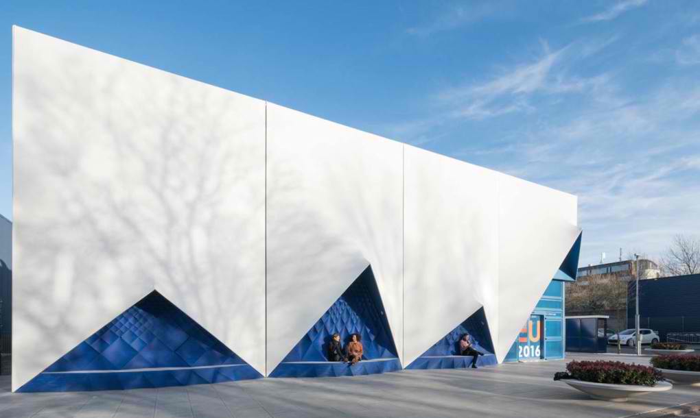 Zgrada od oko 700 kvadrata, kroz koju će proći oko 17.500 ljudi za vreme holandskog predsedavanja Evropskom unijom, napravljena je od zakrivljenih belih panela koji su dobijeni 3D štampom i sastavljani na licu mesta. Klupe su takođe dobijene 3D tehnikom i postavljene su ispred zgrade kako bi se podstakla reakcija sugrađani sa samim objektom.
