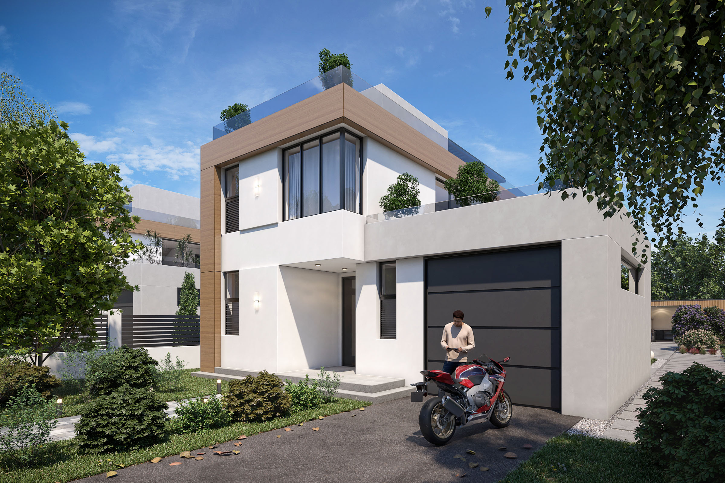 Uz veliko dvorište, koje valjda suština bega iz grada, je takođe nelogično formiranje zone za odmor i zabavu na krovu, osim ako cilj ovih kuća nije samo izdavanje za vikend i zabavu u hot tub-u.