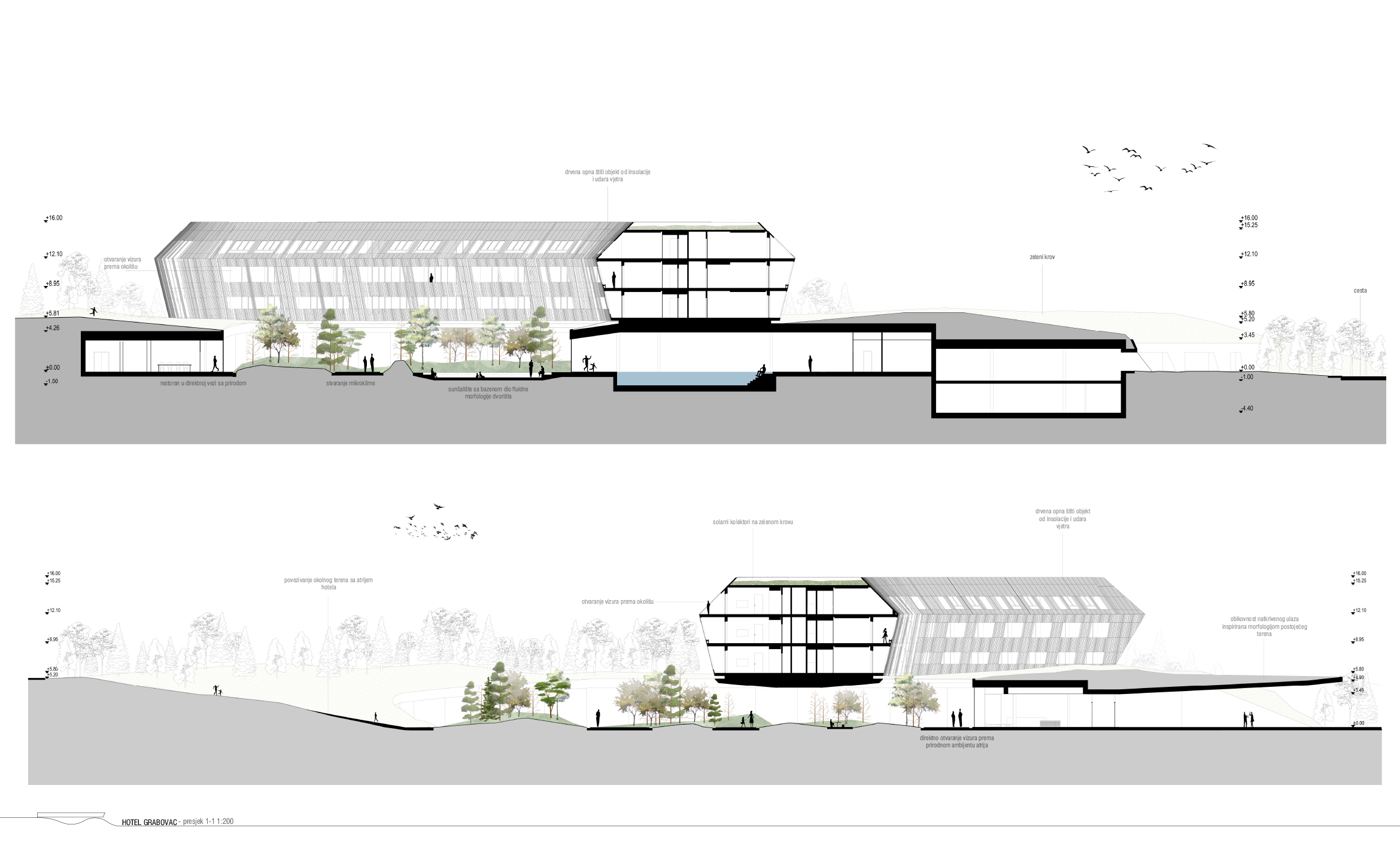 Hotel Grabovac namenjen je ljubiteljima prirode i tradicije, ali i ljubiteljima dobre arhitekture. Bez sumnje, novi centar aktivnog odmora na Plitvičkim jezerima privlačiće turiste iz cele regije, Evrope i sveta. Arhitektura prodaje uslugu.