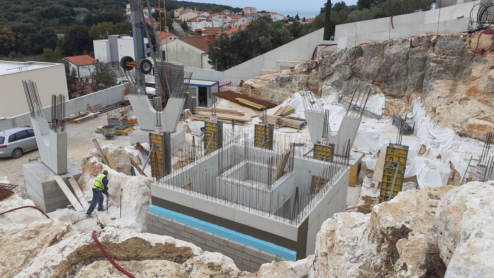 Još u fazi pripreme terena otkriven je skriveni rimski kamenolom. Ministarstvo kulture Hrvatske stavilo ga je pod zaštitu, a arhitekti su bili suočeni sa izazovom: kako sačuvati lokalitet, a istovremeno ostvariti funkcionalnu i savremenu arhitekturu. Umesto kompromisa, odlučeno je da arheološko nalazište postane integralni deo projekta.