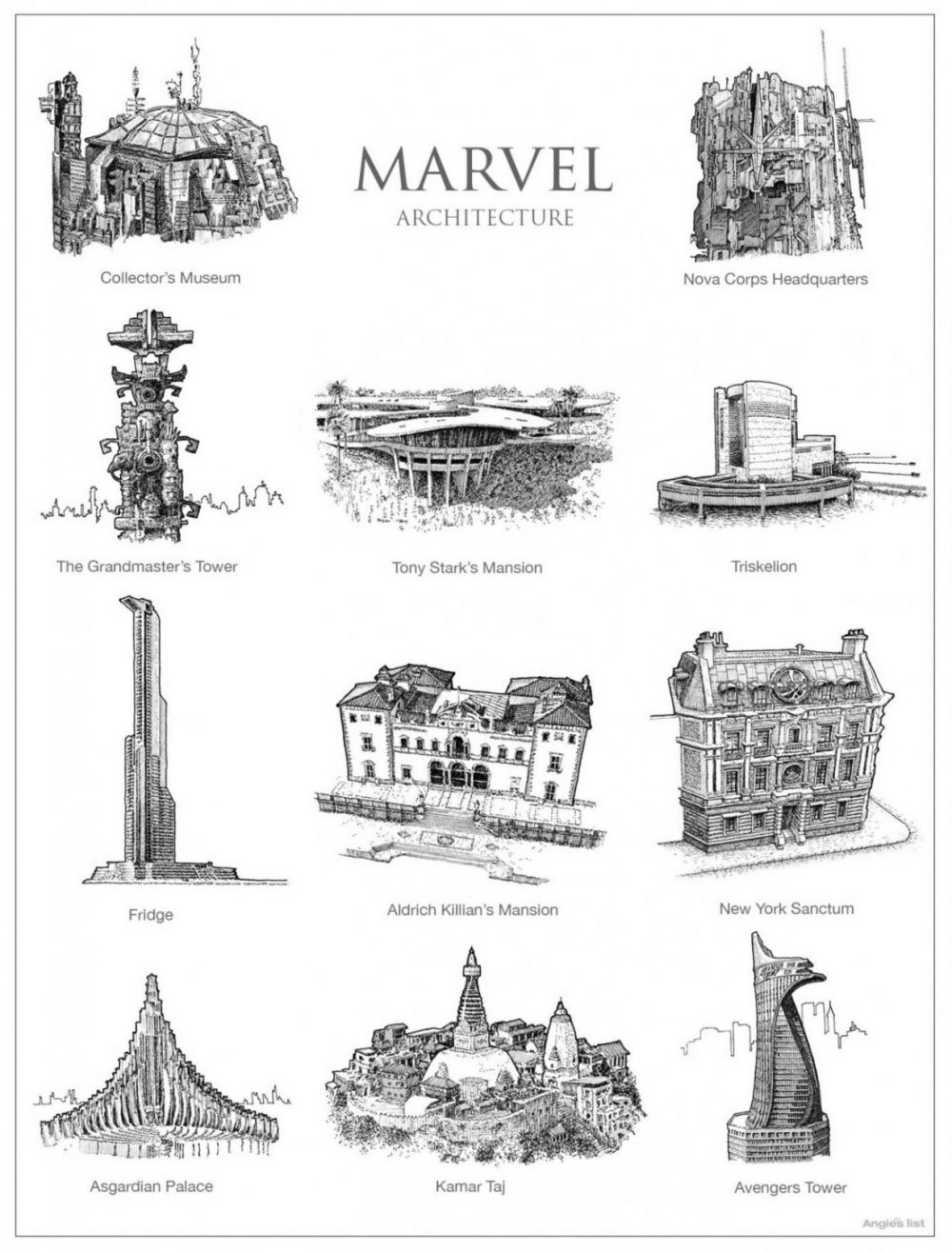 Kako bi prikazali njihovu sirovu lepotu sajt Angie’s List predstavio je seriju skica Fictional Architecture koja slavi arhitekturu ovih objekata u formi ilustracija. Papir i olovka poslužili su da se predstave neke od nezaboravnih arhitektonskih dela iz serije Igre prestola, filmova o Hariju Poteru, ostvarenja iz Marvelovog univerzuma ali i popularnih video-igara kao što je Skyrim.