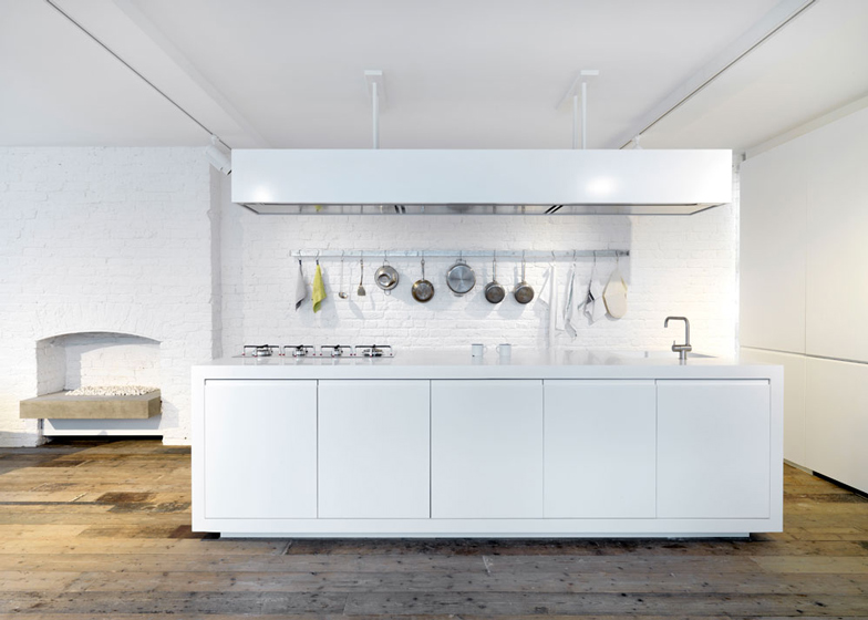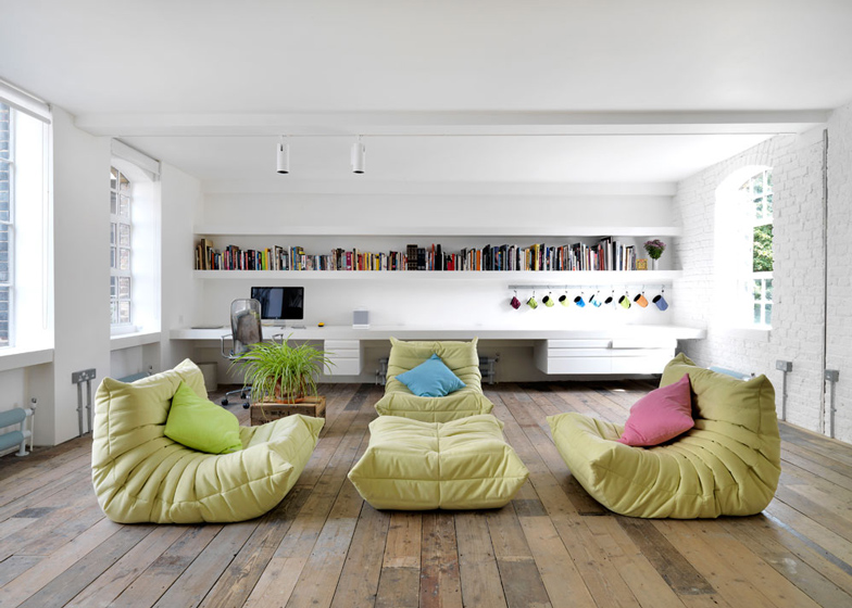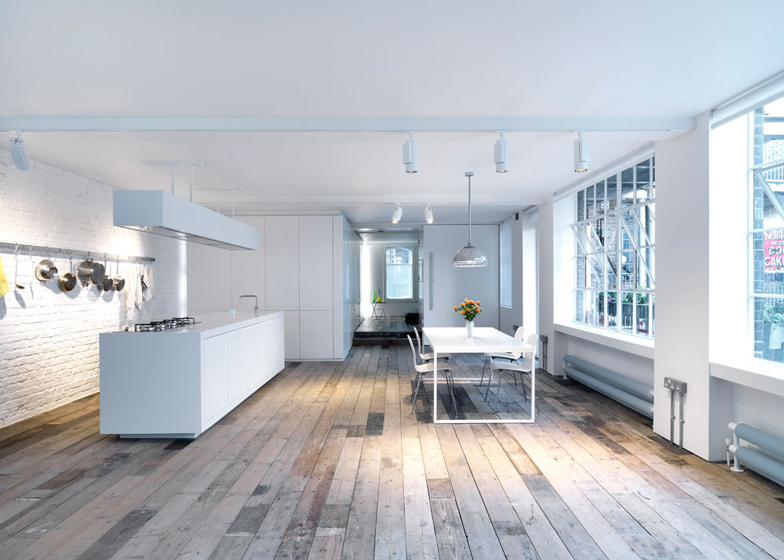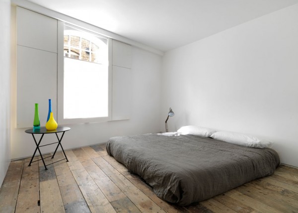 Arhitektama iz firme Form Design Architecture ideja vodilja za uređenje enterijera bila je nenarušena zidana konstrukcija. Umesto da ih sakriju gipsanim pločama, zidovi od opeke stavljeni su u prvi plan i okrečeni u belo. Kako bi se postigao preko potreban kontast, odabran je parket u tamnijoj boji. Međutim, to nije bilo kakva drvena podna obloga već je u pitanju spašeni parket iz ruševne velške crkve koji je u ovom prostoru dobio novi život.